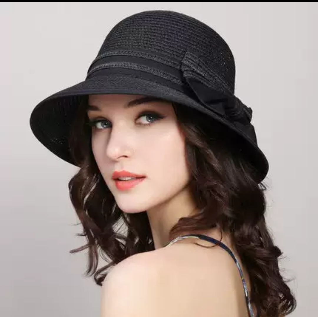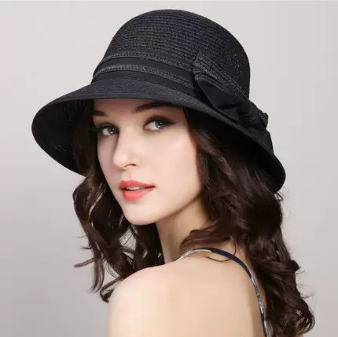 Nón vành nhỏ fedora chất liệu cói mũ rộng vành đi biển phối nơ đai đen thời trang Hàn Quốc Chất liệu cói thoáng mát Kích thước vành rộng 5cm Chất liệu cói thoáng mát