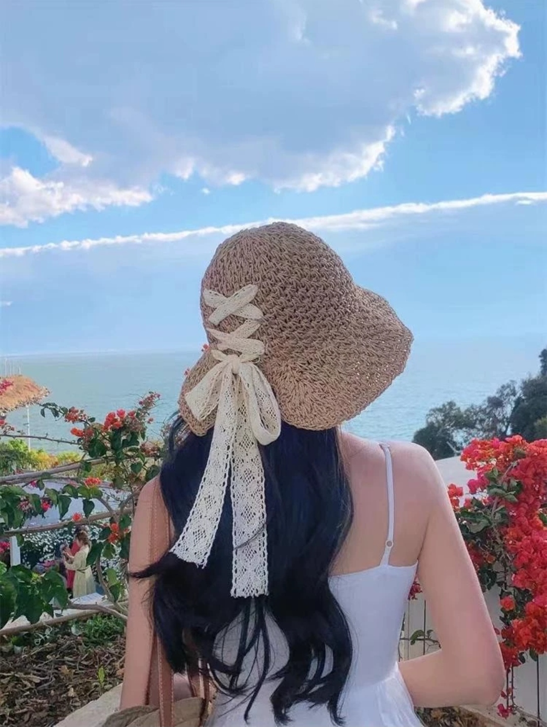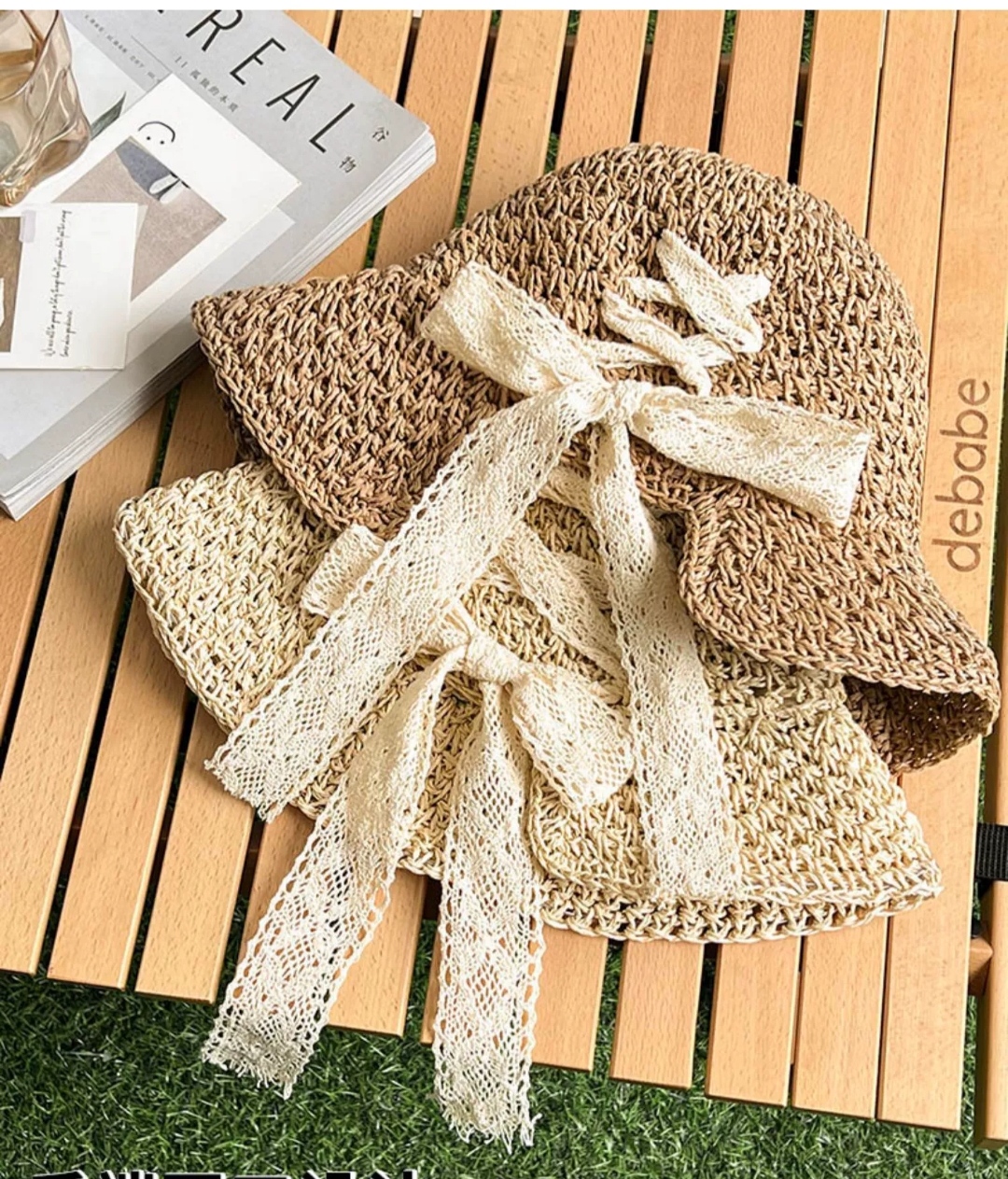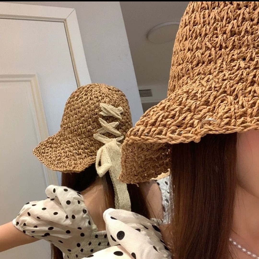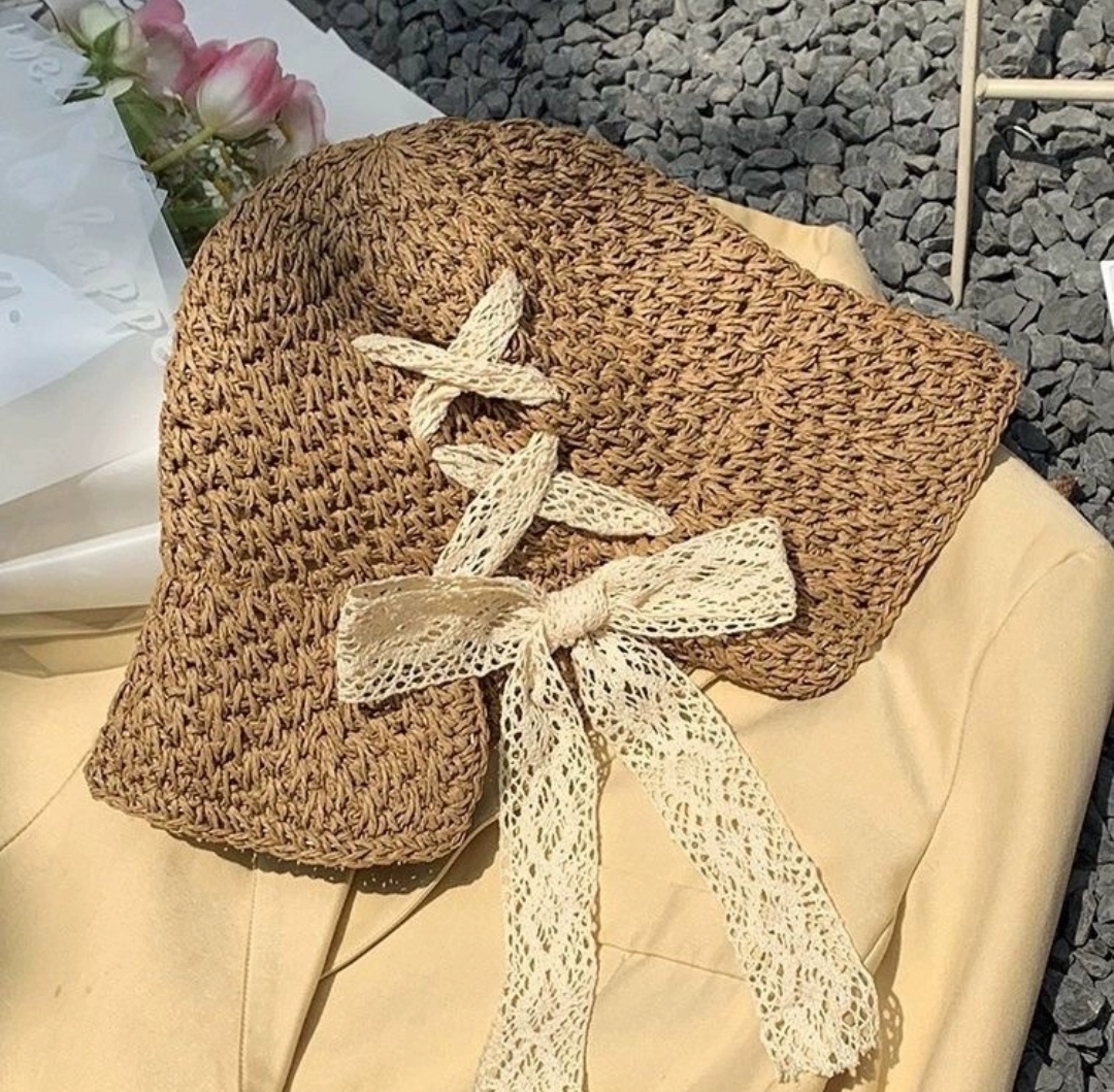 Mua tại TiktokMũ nón gấp gọn rộng vành thoáng khí phối ren tiện lợi đi biển che nắng với chất liệu cói rơm