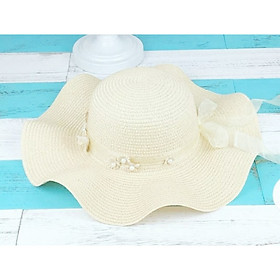 Mũ nón đi biển vành nhỏ chóp bằng phối đai trắng ngọc trai nhân tạo chất liệu cói chống nắng thoáng mát thời trang Hàn Quốc Chất liệu cói Kiểu dáng thời trang chống nắng