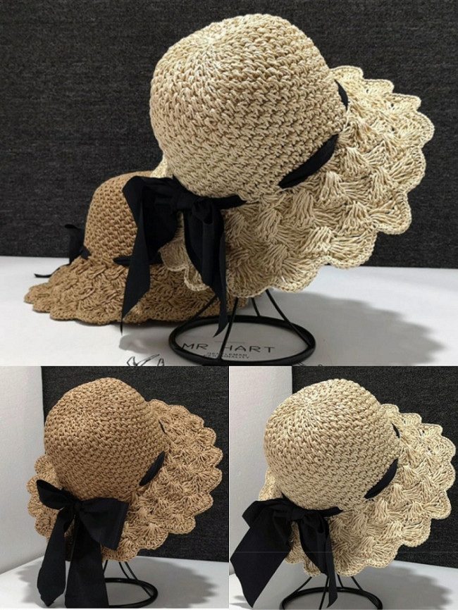 Nón mũ Nữ cói Dệt Móc Tay thoáng khí Có Thể Gập Đi Biển