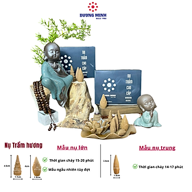- NỤ LỚN: Nụ Quế và Bồ Kết cháy trong khoảng 30-40 phút, Nụ Trầm 15-25 phút, Các loại còn lại cháy trong 30-35 phút Chúng tôi có 2 loại khuôn nên nụ tùy đợt sản xuất có thể là hình búp sen hoặc hình tháp