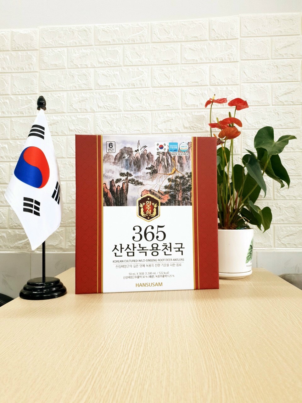 Thành phần: Chiết xuất hỗn hợp thực vật [hàm lượng chất rắn trên 2.2%, nước tinh khiết, táo đỏ HQ (trong nước), rễ cây cát căn (trong nước), ngải cứu (trong nước), đương quy, cnidium officinale makino, vỏ quýt, rễ cây địa hoàng (địa hoàng), nấm linh chi, cam thảo, quế], chiết xuất rễ nhân sâm núi 30% (trong nước, hàm lượng rắn 0.01%), Fructose lỏng, chiết xuất nhung hươu 9.25% (New Zealand), sản phẩm chế biến từ đường (Xi-rô đường), chiết xuất hồng sâm (trong nước, 6 năm tuổi, thành phần hồng sâm 70mg/g, hàm lượng rắn trên 60%) 0.05%, Axit citric, Taurine