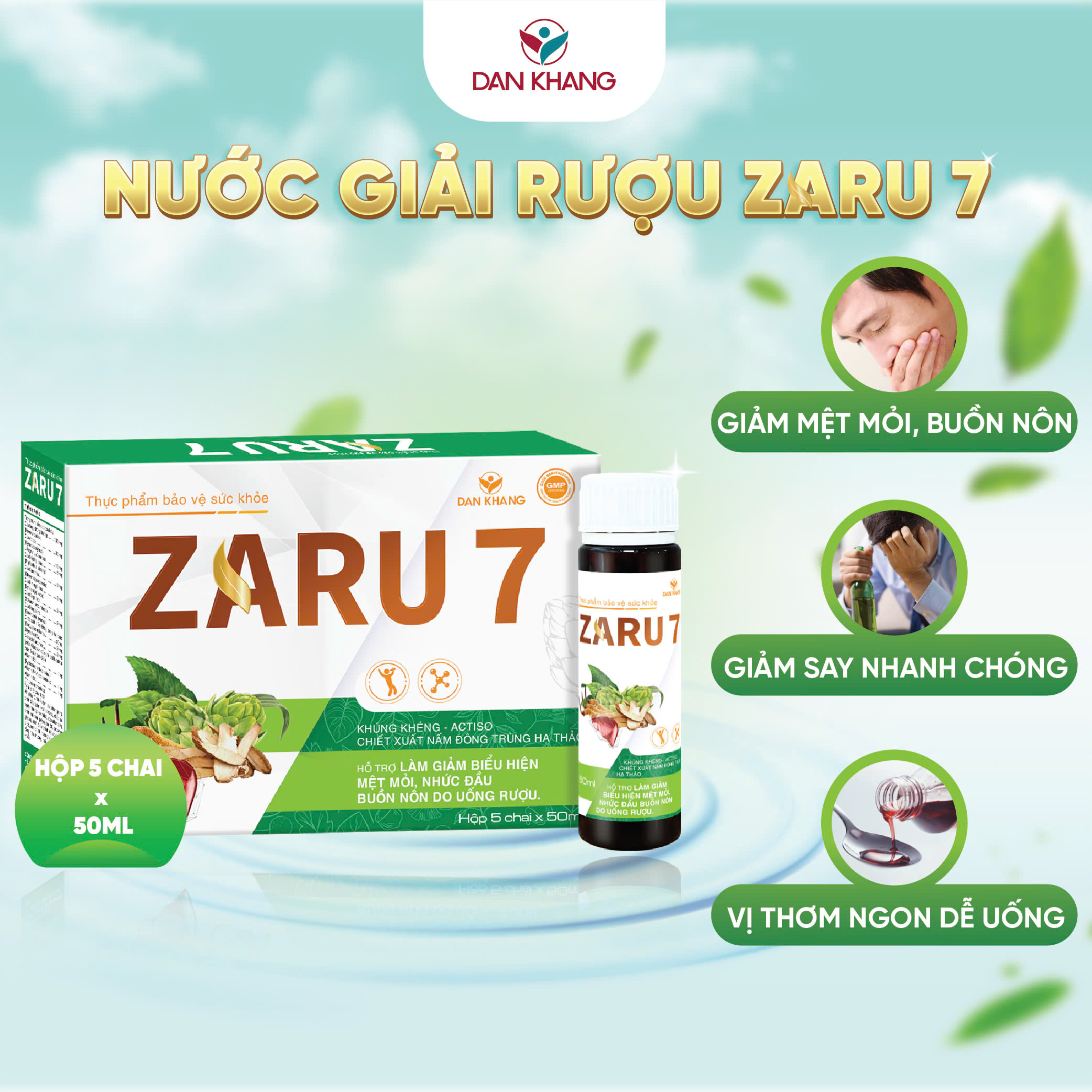 Nước Giải Rượu ZARU 7 Thanh Nhiệt Mát Gan Giúp Giảm Mệt Mỏi, Nhức Đầu, Buồn Nôn Do Rượu Bia Hộp 5 Chai Nước Giải Rượu ZARU 7 là một sản phẩm không thể
