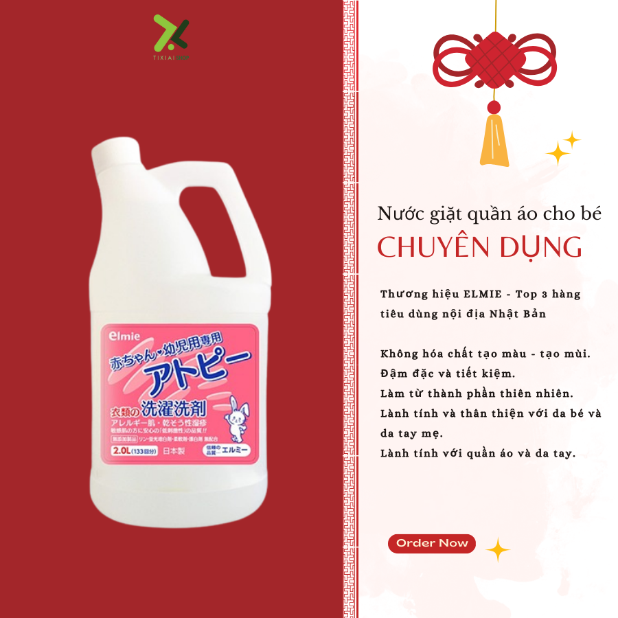 ✨Nước giặt quần áo Elmie không chất phụ gia dành cho trẻ sơ sinh và trẻ nhỏ - 2000ml (Hàng nội địa Nhật Bản)