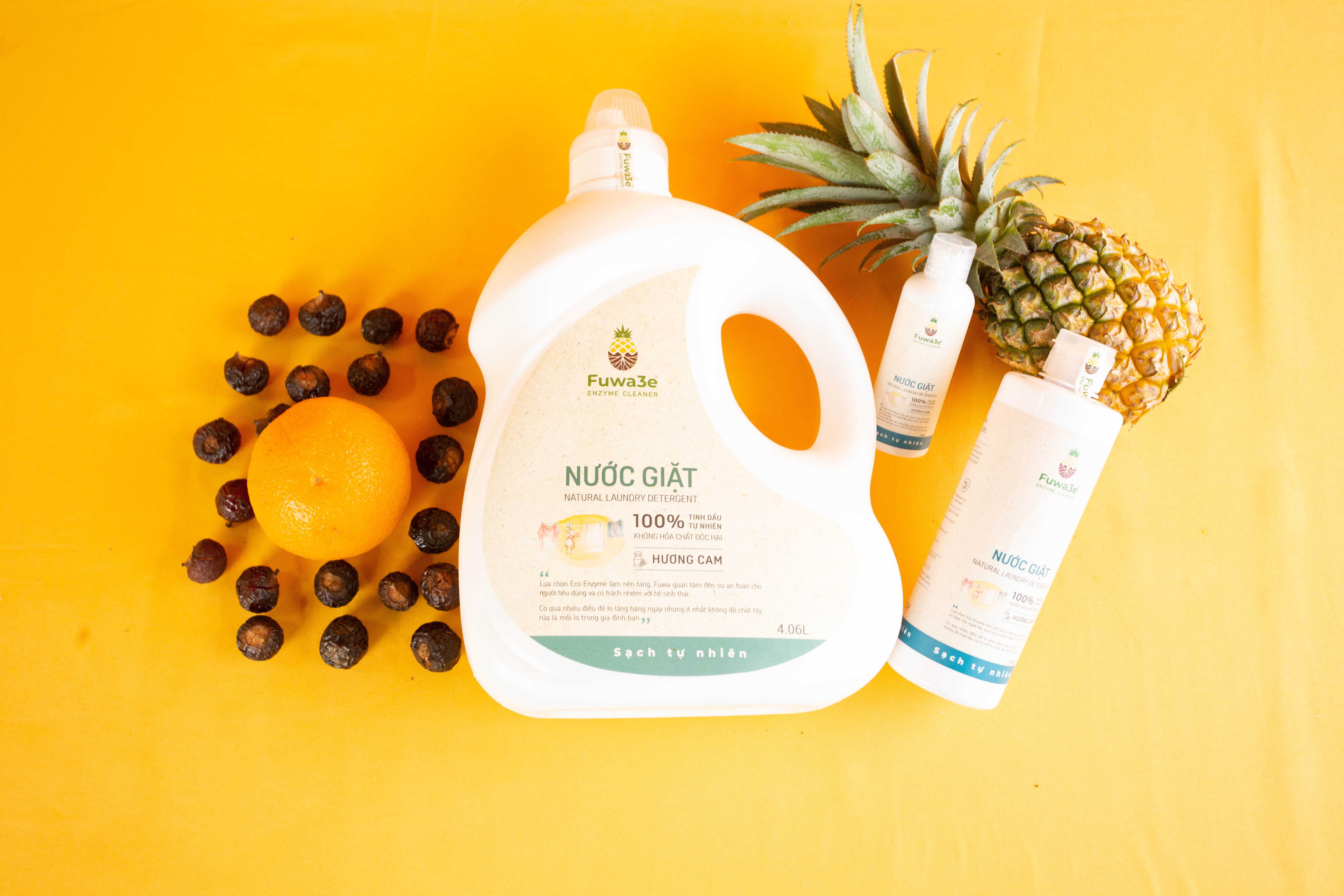 Là nhà sản xuất nước giặt tự nhiên có thành phần chính được lên men từ DỨA: các acid hữu cơ và enzyme làm nhiệm vụ phân tách chất bẩn. Ngoài tiêu chí đảm bảo giặt sạch, thơm, nước giặt Fuwa3e còn an toàn tuyệt đối, không hại da tay. Đặc biệt rất phù hợp cho quần áo trẻ em.