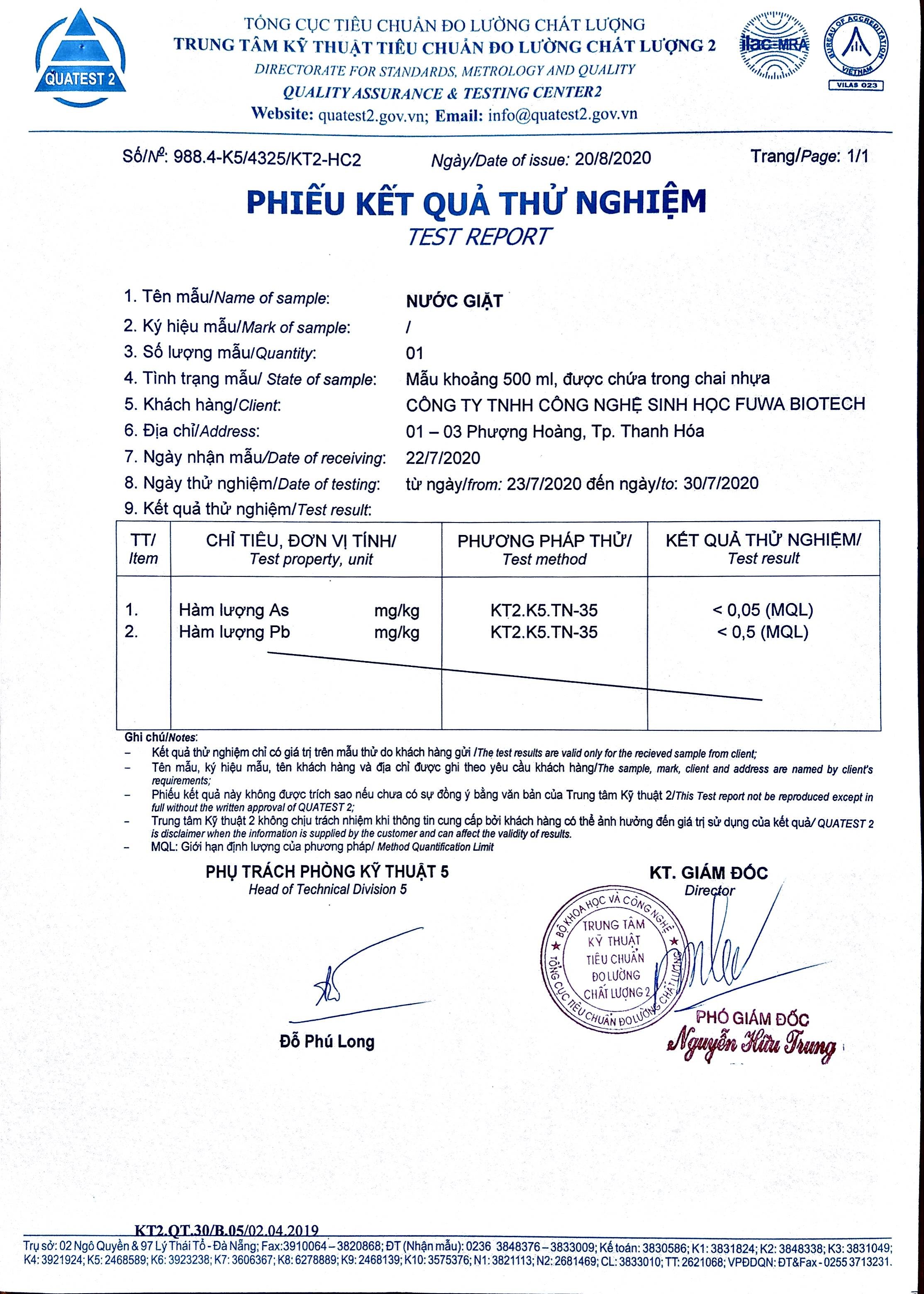 Mua tại TiktokNước giặt hữu cơ Fuwa3e ứng dụng công nghệ lên men vỏ dứa với Enzyme Bromelain có trong dứa có hoạt tính làm tan và tẩy sạch các vết bẩn. Sản phẩm không chứa hoá chất độc hại, chất tẩy trắng và hương liệu nên phù hợp giặt đồ cho trẻ sơ sinh, đồ lót, khăn. Sản phẩn đạt chuẩn không kích ứng da được kiểm định bởi Quatest 2. Một đặc điểm nổi bật của sản phẩm là nước thải sau khi giặt có thể dùng trực tiếp để tưới cây, các enzyme trong nước thải sẽ làm sạch đất và cung cấp thêm lợi khuẩn cho cây trồng. Ưu điểm vượt trội