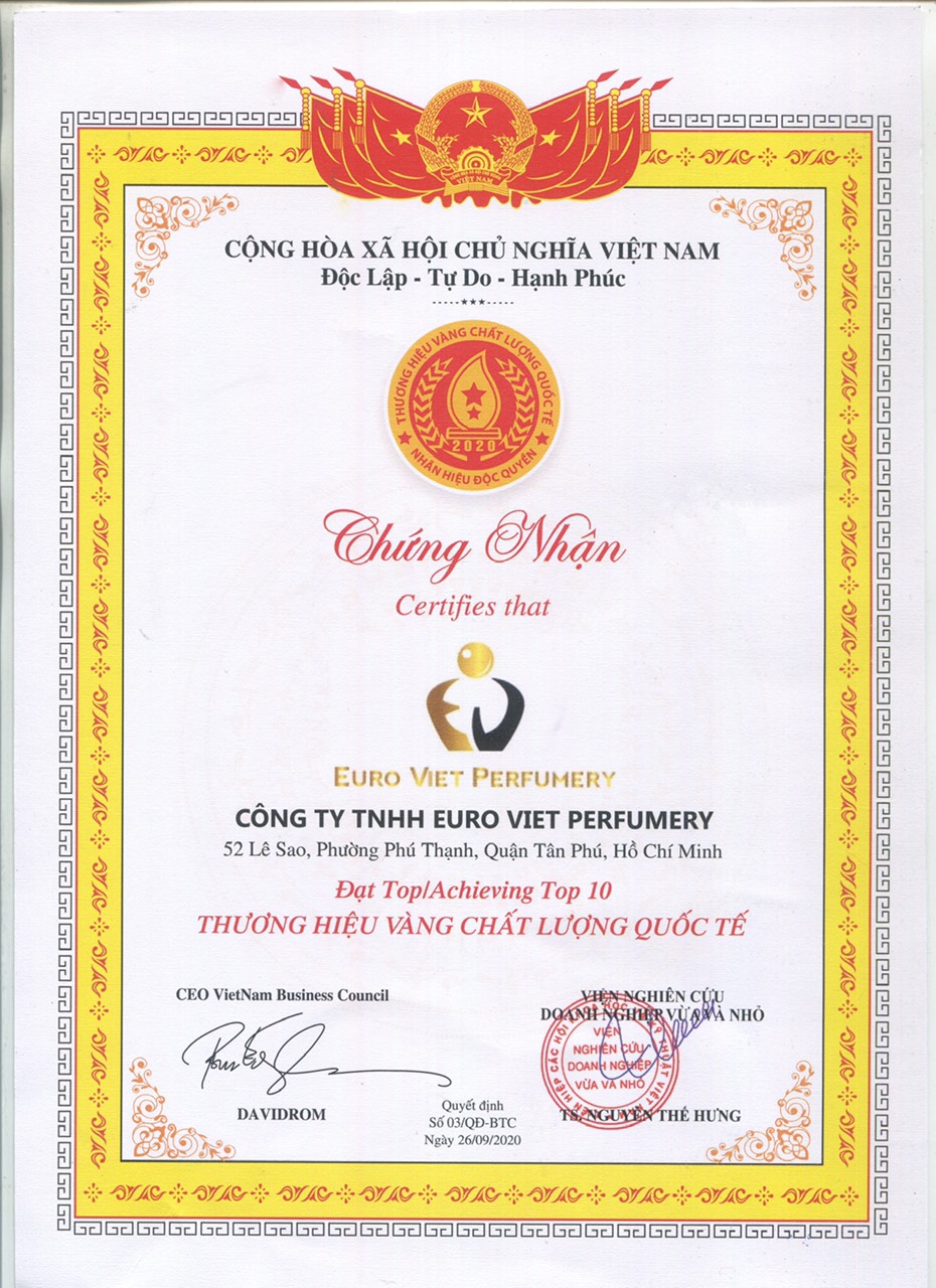 CAM KẾT HÀNG CHÍNH HÃNG 100% TỪ CÔNG TY SX-TM-XNK NƯỚC HOA EURO VIET CAM KẾT HÀNG CHÍNH HÃNG 100%!!! NƯỚC HOA NỮ MILLENIA 003W THÔNG TIN THƯƠNG HIỆU Thương hiệu: Euro Viet Perfumery Nơi