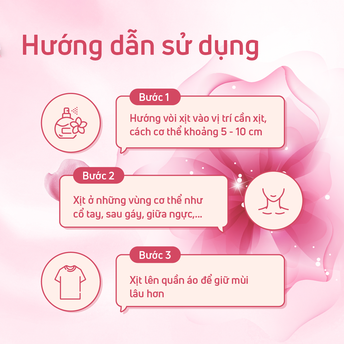 - Hướng vòi xịt vào vị trí cần xịt, cách cơ thể khoảng 5 - 10 cm.