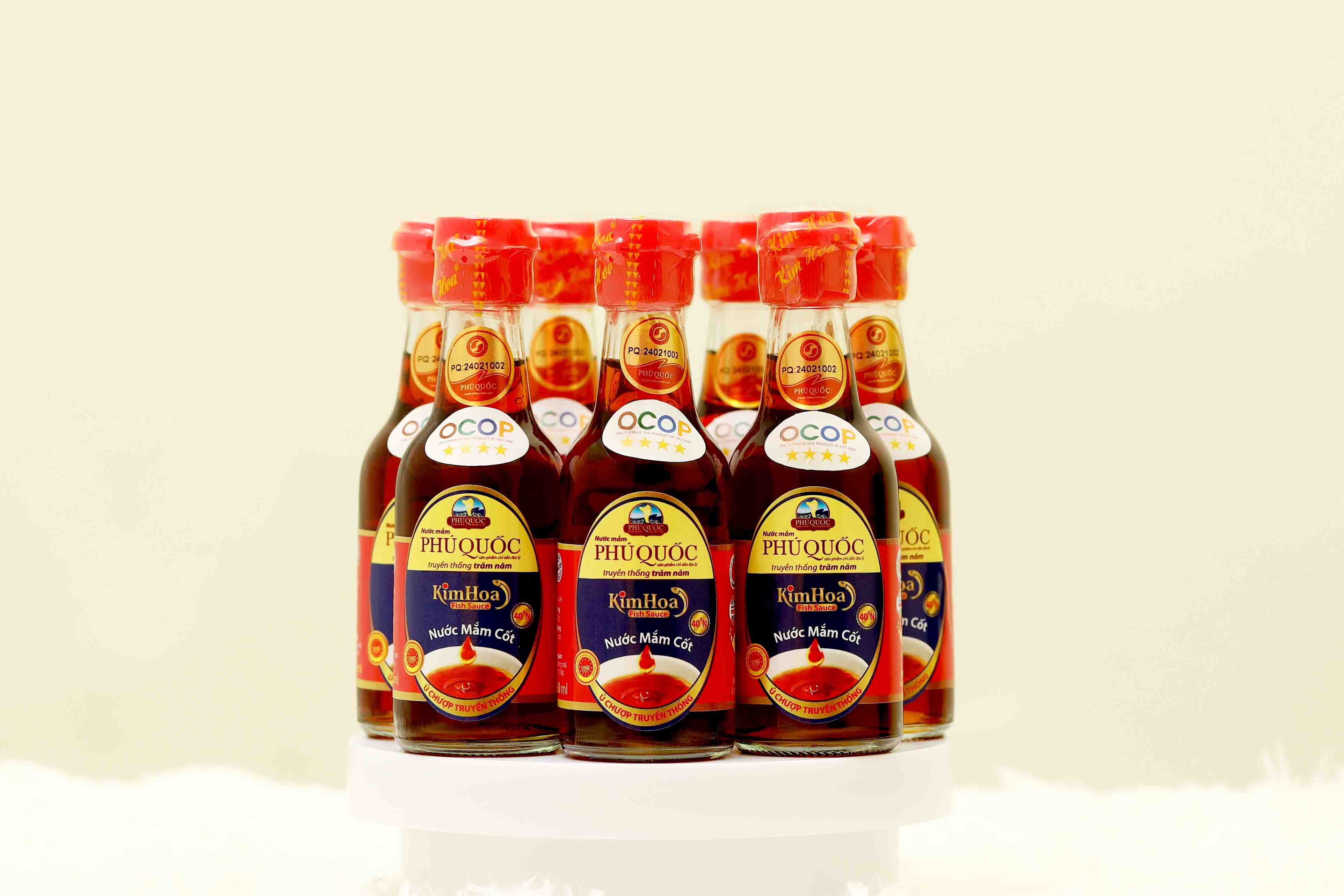 Khác với các loại nước mắm pha chế công nghiệp có sử dụng nhiều chất điều vị và phẩm màu, Nước Mắm Kim Hoa được làm 100% từ Cá Cơm tại vùng đảo Phú Quốc - là loại cá cơm giàu đạm, tươi ngon. Cá cơm sau khi được đánh bắt lên sẽ được ướp ngay trên tàu theo tỷ lệ 3 cá 1 muối, khi thuyền cập bến cá được đưa lên thùng, kiểm tra độ mặn và tiến hành gài nén - ủ chượp trong thùng gỗ đặc trưng. Quá trình này bắt buộc phải từ 12 tháng trở lên, để cá được thuỷ phân hoàn toàn, khi đó nước mắm được kéo rút ra sẽ có màu cánh gián đặc trưng, hương vị đậm đà và cái hậu ngọt của đạm cá được lắng đọng và cảm nhận rõ nơi cuống họng. Chính vì thế, nhiều khách hàng trước có thói quen sử dụng nước mắm công nghiệp khi nếm nước mắm Kim Hoa lần đầu sẽ cảm thấy mặn.