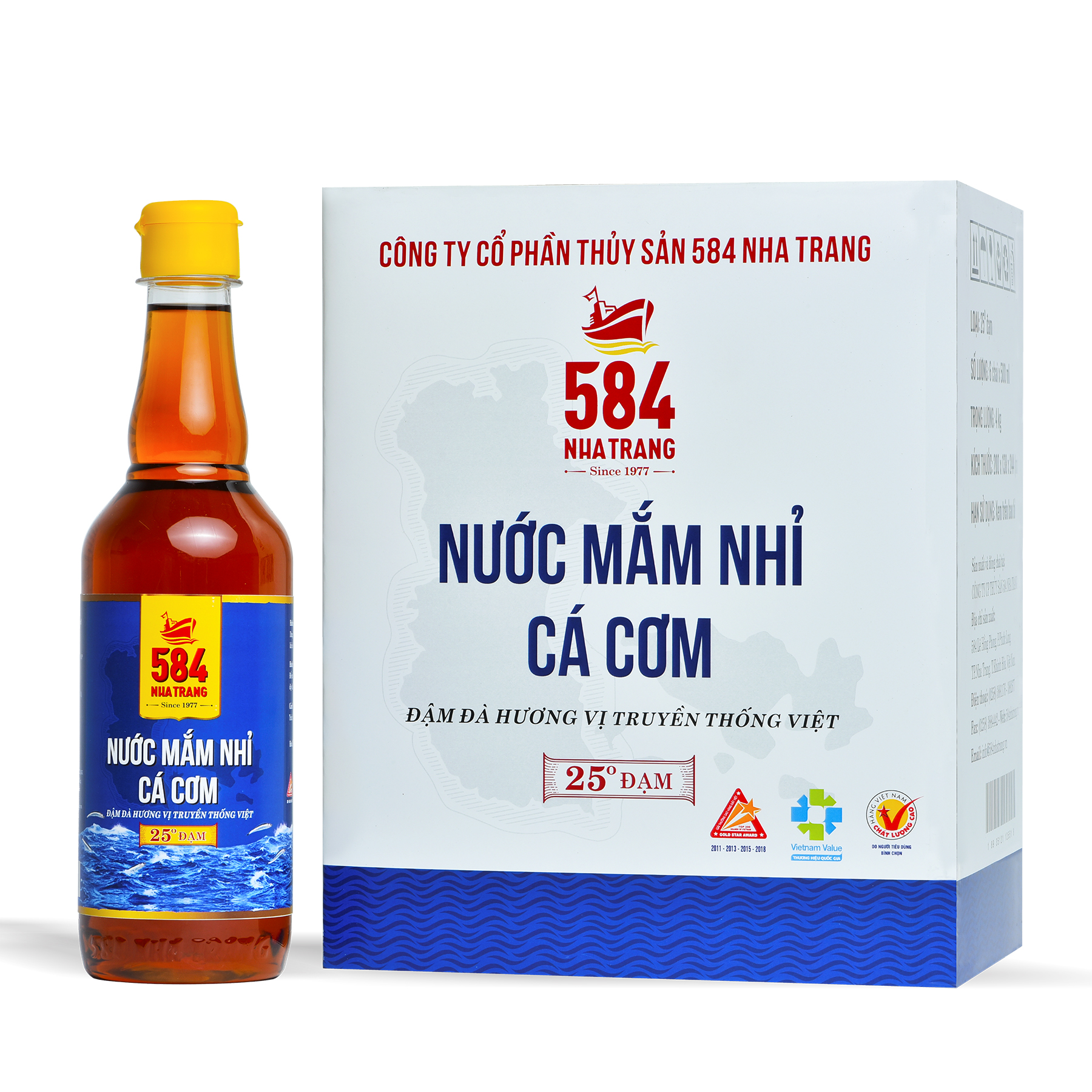 Chi tiết sản phẩm nước mắm 584 Nha Trang 40 độ đạm chai thủy tinh (6 chai 500ml/thùng)