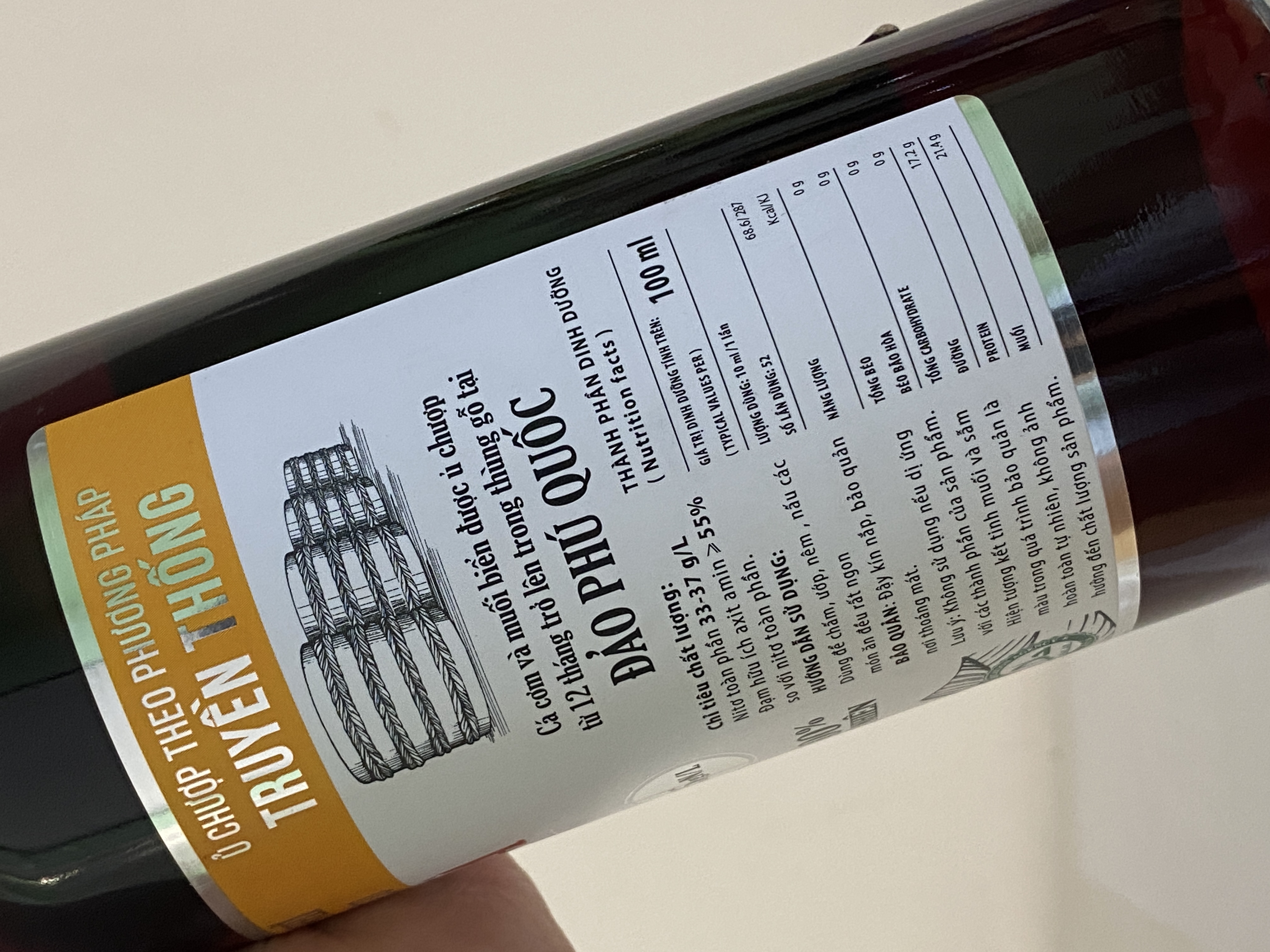 Sản phẩm chính hãng của Công ty VIỆT 54 - VIET 54. Nước mắm cốt 30 độ đạm, sản xuất theo phương pháp ủ chượp thùng gỗ truyền thống Phú Quốc – Đặc sản Việt