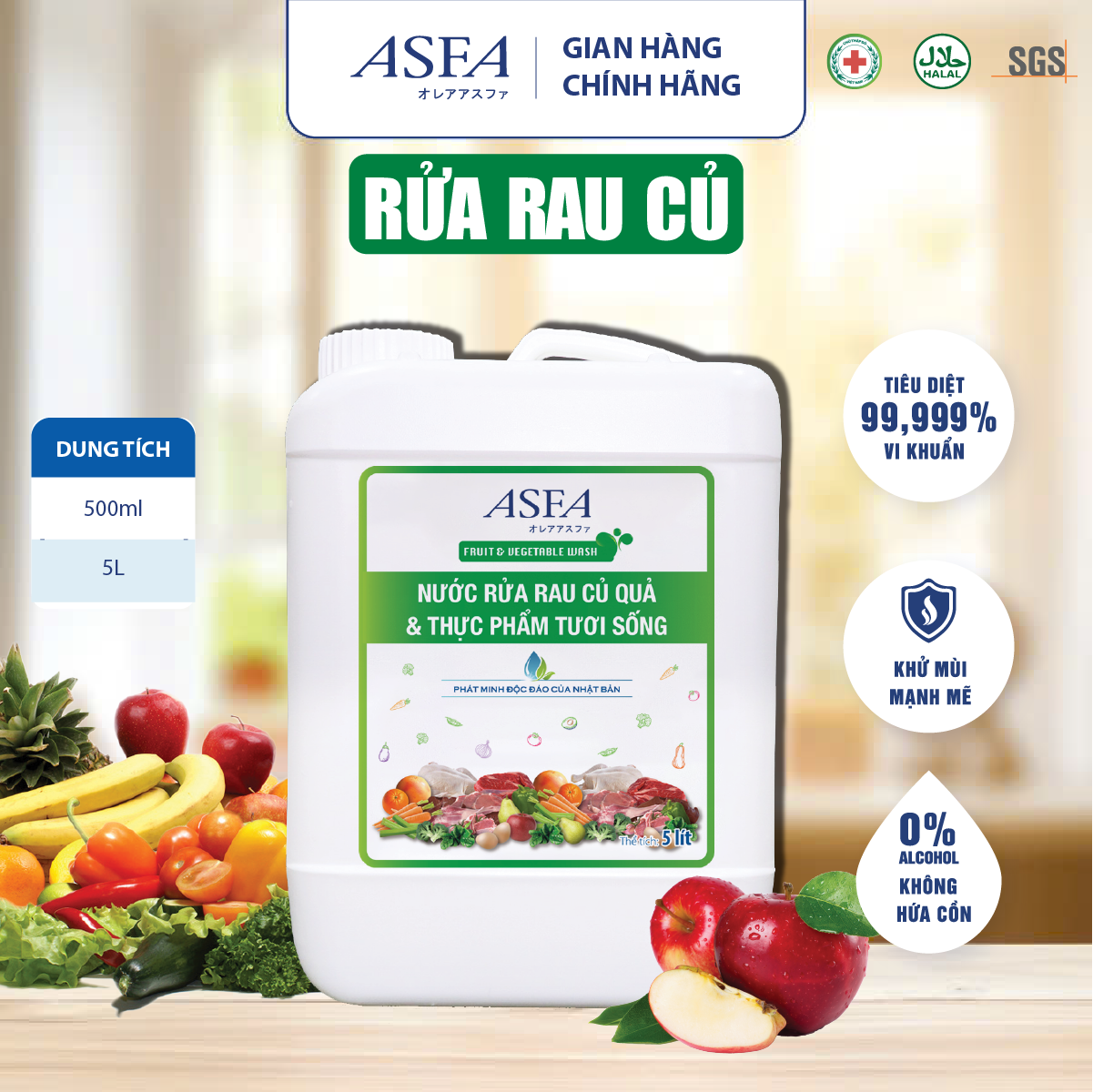 ✨Nước Rửa Rau Củ & Thực Phẩm Tươi Sống Khử Khuẩn, Khử Mùi ASFA Fruit & Vegetable 5 lít An Toàn 100%