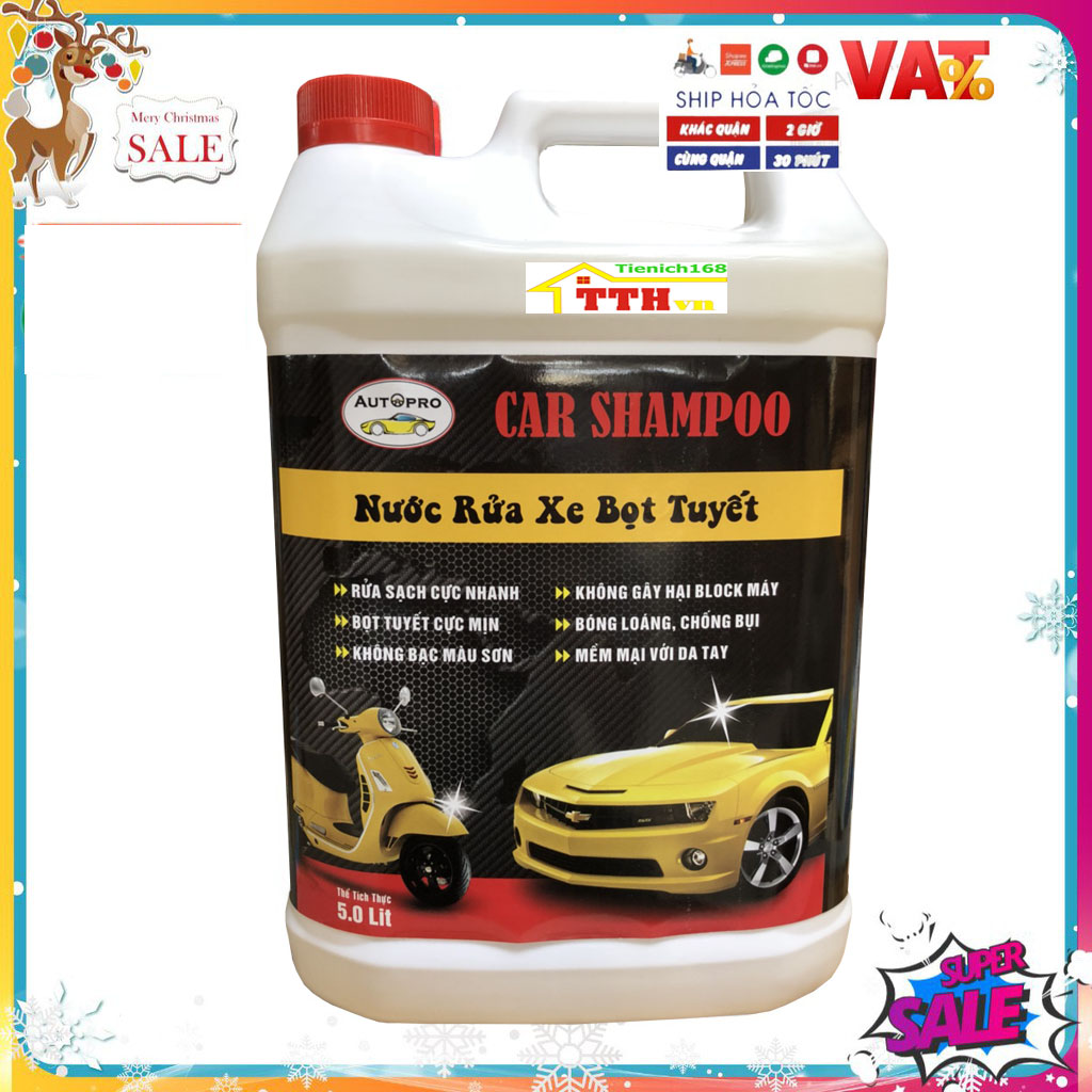Thông Tin Sản PhẩmTên sản phẩm: Nước rửa xe bọt tuyết Car Shampoo 5 lít cho ô tô xe máy Công dụng: Tẩy sạch vết bẩn, bảo vệ màu sơn nguyên bản, tạo độ bóng cho bề mặt xe, chống bám bụi, chống xước tr...