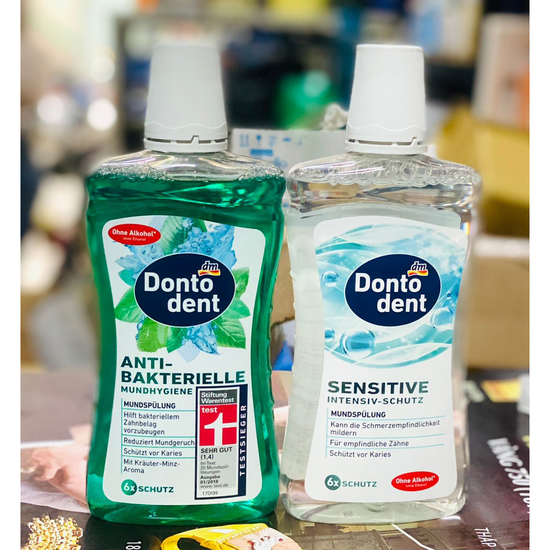 - Hơi thở thơm mát lâu dài. Nước súc miệng Dontodent không chứa cồn (không chứa ethanol) Protect&Care 10 trong 1 bảo vệ toàn diện được phát triển đặc biệt để vệ sinh toàn diện toàn bộ khoang miệng. Với công thức bảo vệ toàn diện gấp 10 lần, nó đảm bảo cảm giác miệng được chăm sóc kỹ lưỡng, cực kỳ thơm mát và làm sạch khoang miệng ngay cả ở những nơi khó tiếp cận mà bàn chải đánh răng không thể chạm tới. **Chứa bis(hydroxyethyl)aminopropyl-N-hydroxyethyloctadecylamine dihydrofluoride và natri florua. Tổng hàm lượng florua: 450 ppm F-. Antibakteriellei :