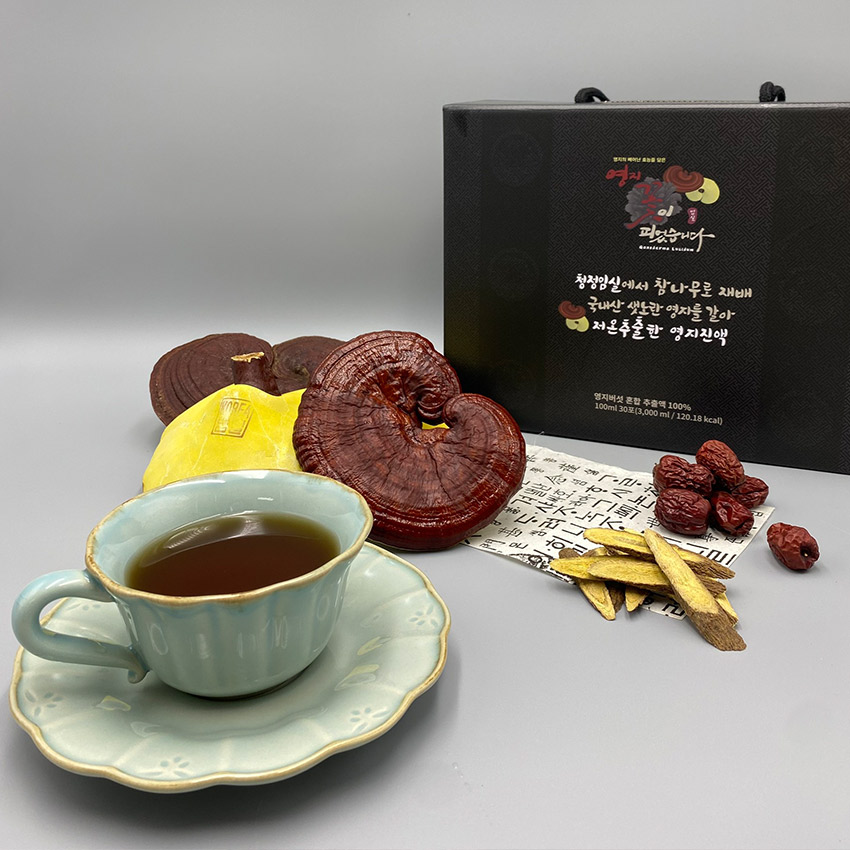 Nấm linh chi Hàn Quốc (71,8%), Táo tàu Hàn Quốc (23,9%), Cam thảo Uzbekistan (4,3%) và nước tinh khiết