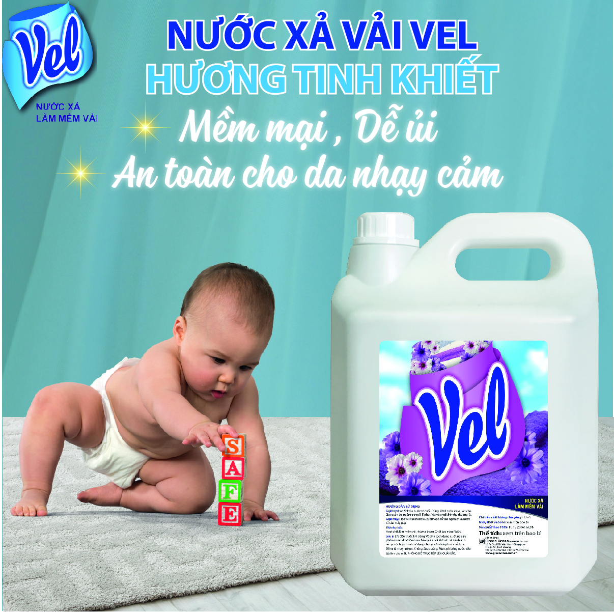 Nước xả quần áo VEL Hương Tinh Khiết - Dành cho da em bé và da nhạy cảm. - Không hóa chất lưu trên quần áo, bảo vệ sức khỏe Bé và cả gia