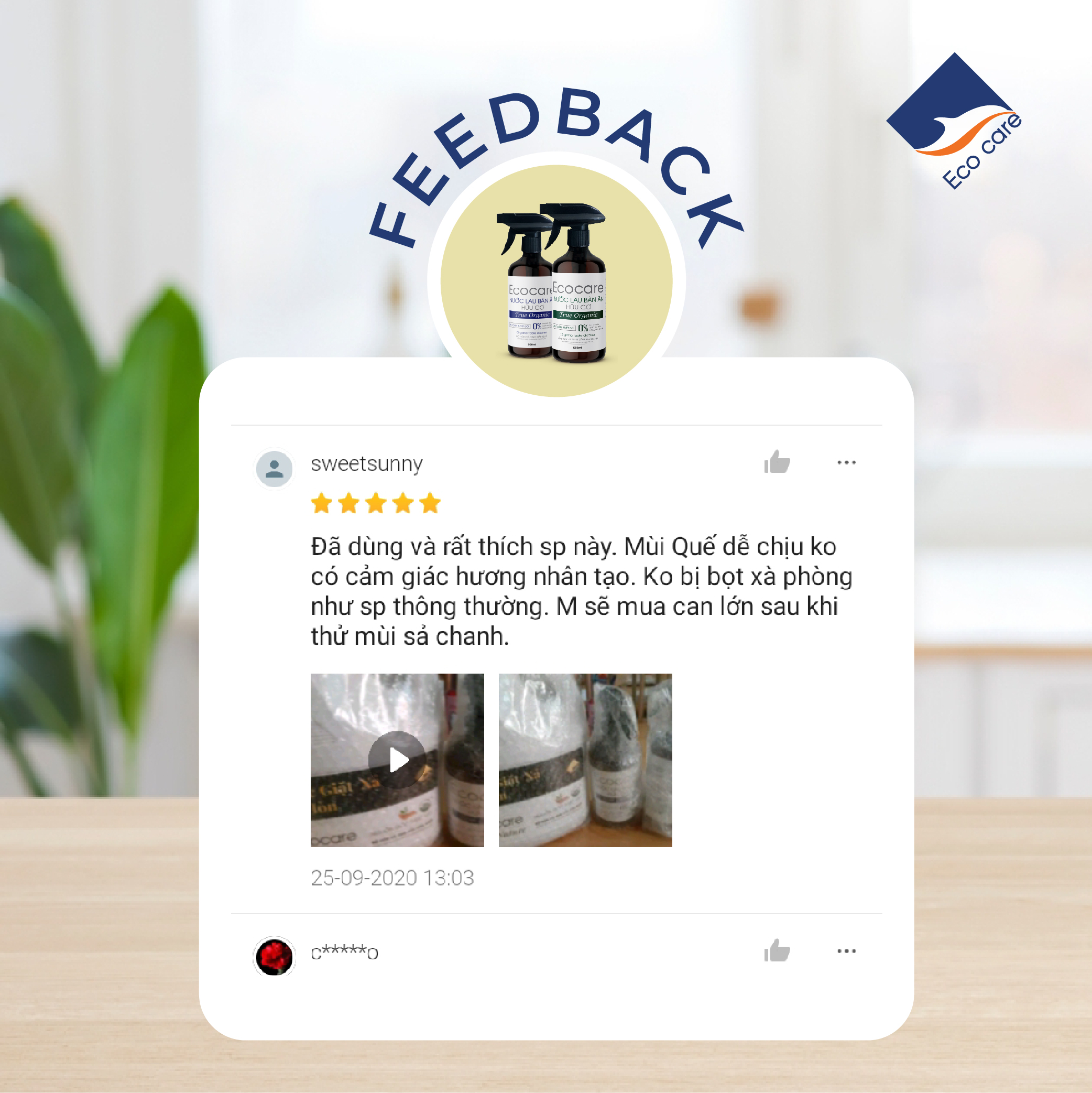 - Quy cách đóng gói: Chai nhựa – Ecocare cam kết: