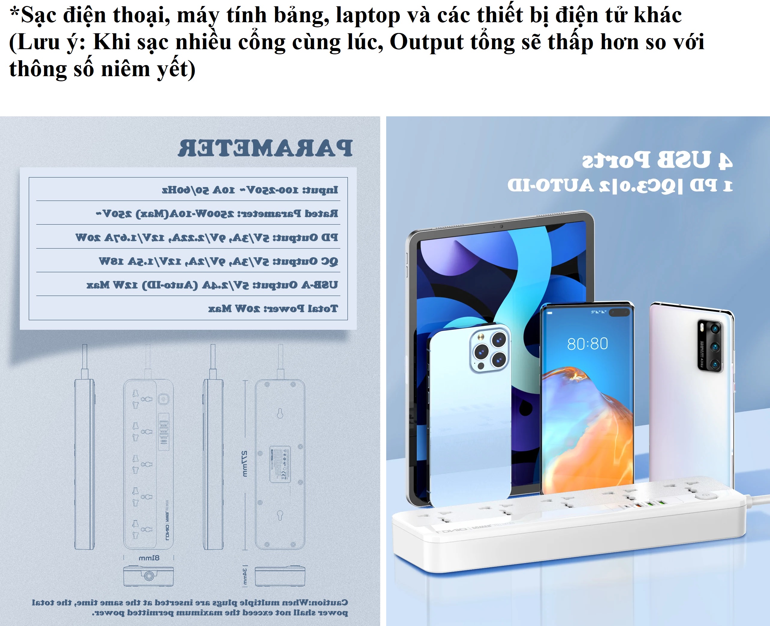 Lưu ý: *Khi cắm hay sạc nhiều cổng cùng lúc thì Output sẽ giảm so với niêm thông số niêm yết.