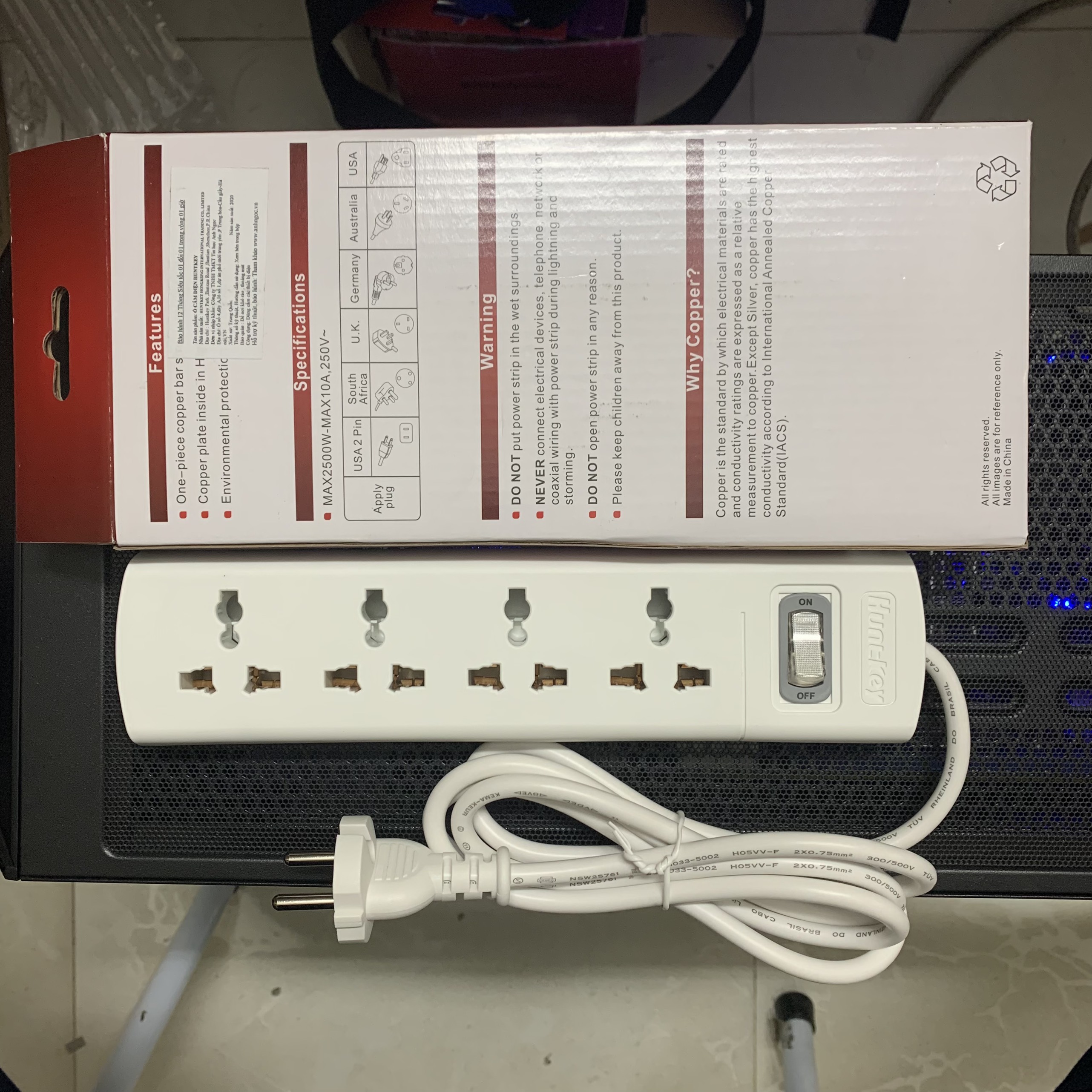 Loại: 4 ổ 3 chấu ( có nắp che) Chiều dài dây: 3 mét Màu sắc: Trắng và Đen Dây dẫn ĐỒNG NGUYÊN CHẤT, ĐÚNG TIẾT DIỆN 100%. Ổ cắm nối dài đa năng cao