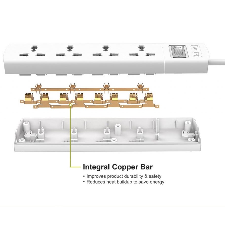 ✨Ổ cắm điện đa năng thông minh tự ngắt Huntkey SZM401 - 2500W chính hãng, 4 lỗ 3 chân dài 1.5m- hàng chính hãng
