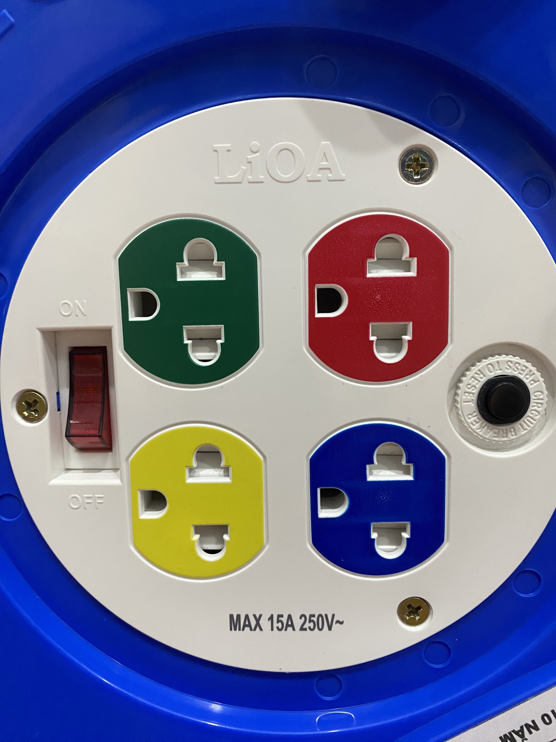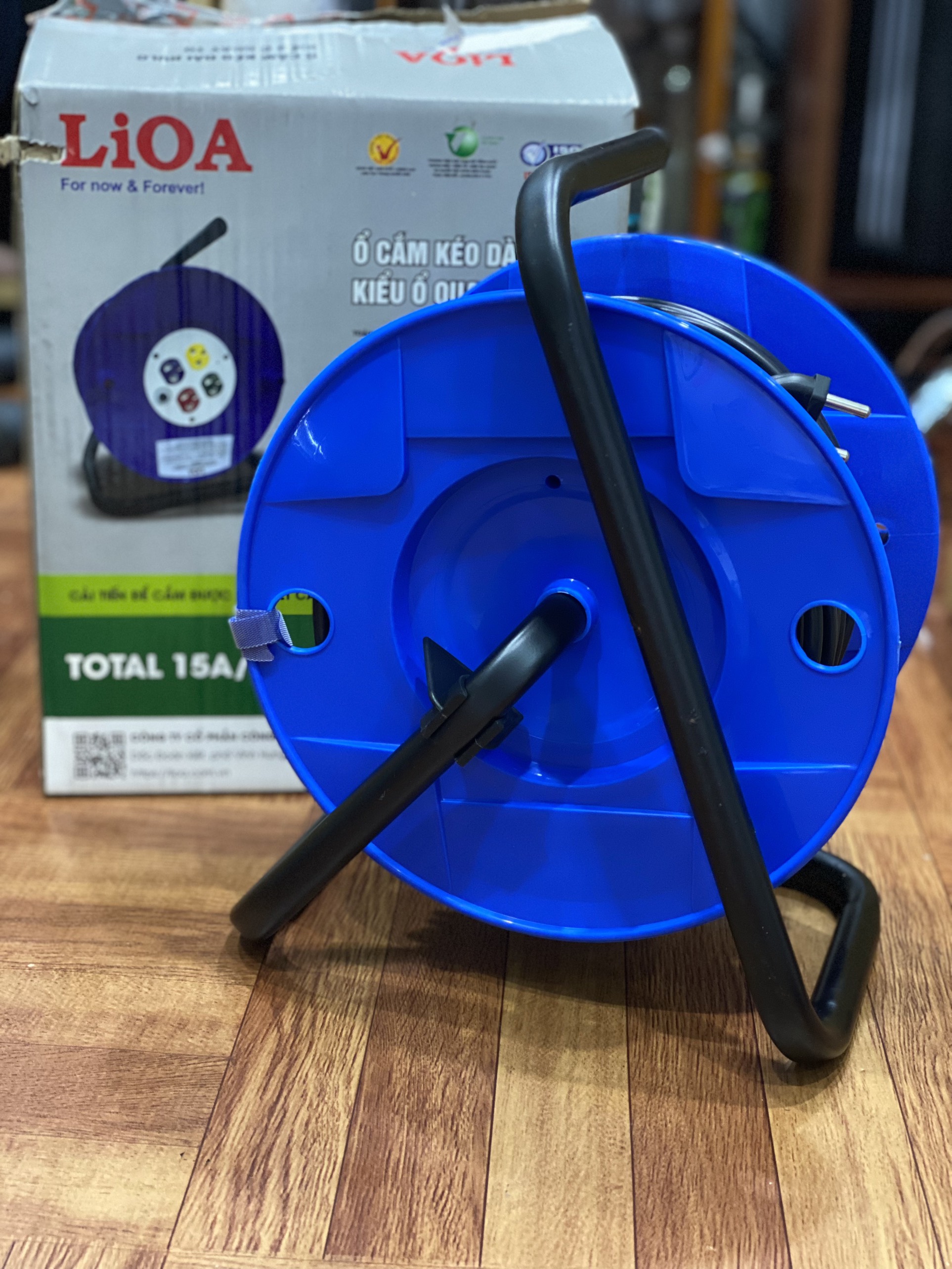 🔴 Ổ Cắm Kéo Dài Quay Tay Kiểu Rulo LiOA QT50-2-15A 50M 3300W Cuộn Dây Xách Tay