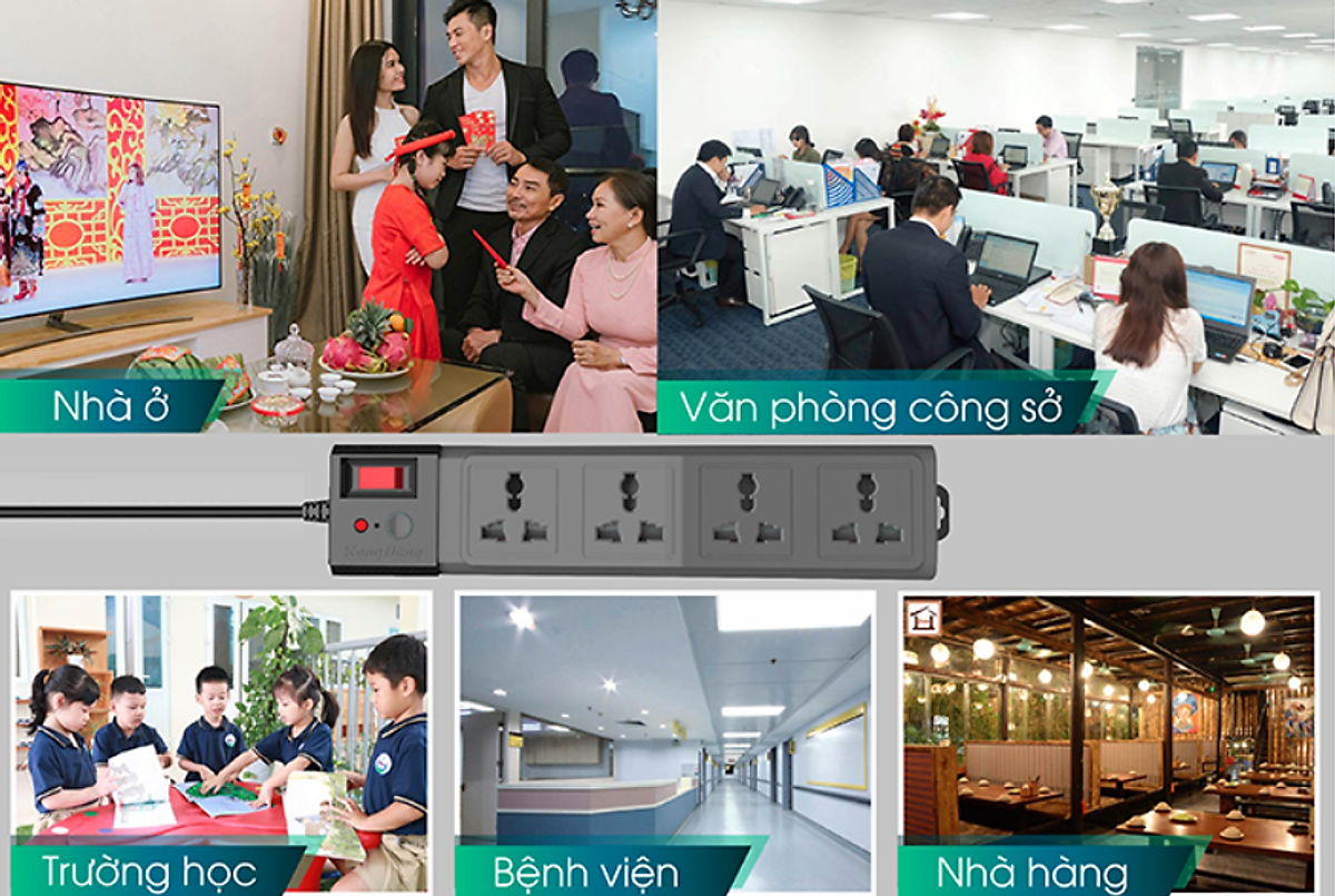 Ổ cắm kéo dài đúng như tên gọi của nó là thiết bị được nối thêm dây để di chuyển tới nhiều vị trí khác nhau. Do vậy, sử dụng ổ cắm kéo dài rất thuận tiện khi ổ cắm đơn không có khả năng đáp ứng truyền tải cùng lúc đến các thiết bị khác nhau (Hộ gia đình) hay chỉ ổ cắm kéo dài mới đủ cắm bộ máy tính, quạt, đèn bàn (Văn phòng công sở) và thuận tiện khi trường học có các buổi họp đông người hay bệnh viện có đông bệnh nhân (Trường học & Bệnh viện).