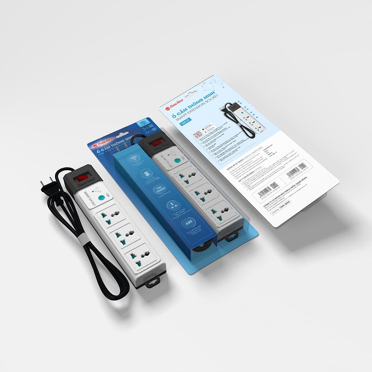 Ổ cắm thông minh Wifi 5m Model: 3C/5M/10A Tìm sản phẩm tương tự Dải điện áp hoạt động: (150-250)V/50Hz Dòng điện ổ cắm tối đa: 10A Công suất ổ cắm tối đa: 2500W Số chu