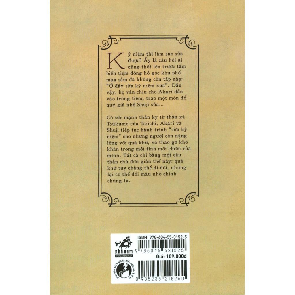 Mua tại TiktokKỷ niệm thì làm sao sửa được? Ấy là câu hỏi ai cũng thốt lên trước tấm biển tiệm đồng hồ góc khu phố mua sắm đã không còn tấp nập: “Ở đây sửa kỷ niệm xưa”. Dẫu vậy, họ vẫn chịu cho Akaridẫn vào trong tiệm, trao một món đồ quý giá nhờ Shuji sửa… Có sức mạnh thần kỳ từthần xã Tsukumocủa Taiichi, Akari và Shuji tiếp tục hành trình “sửa kỷ niệm”chonhữngngười còn nặng lòng với quá khứ, và tháo gỡ khó khăn trong mối tình mới chớm củamình. Tất cả chỉ bằng một câu thần chú đơn giản thế này: quá khứtuy chẳng thể di dời, nhưng lại có thể đổi màu nhờ chính chúng ta .