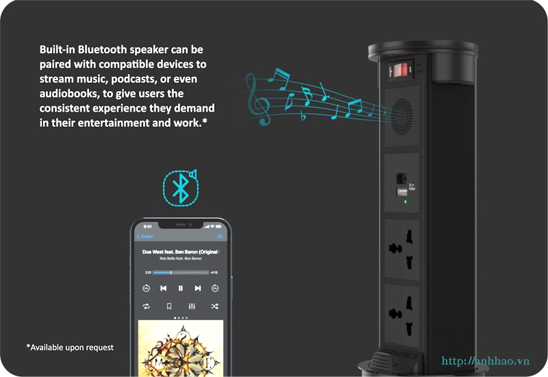 • Số lượng ổ cắm: 2 ổ điện Univesal, 1 ổ sạc USB type C, 1 ổ sạc USB type A, sạc không dây, loa bule tooth