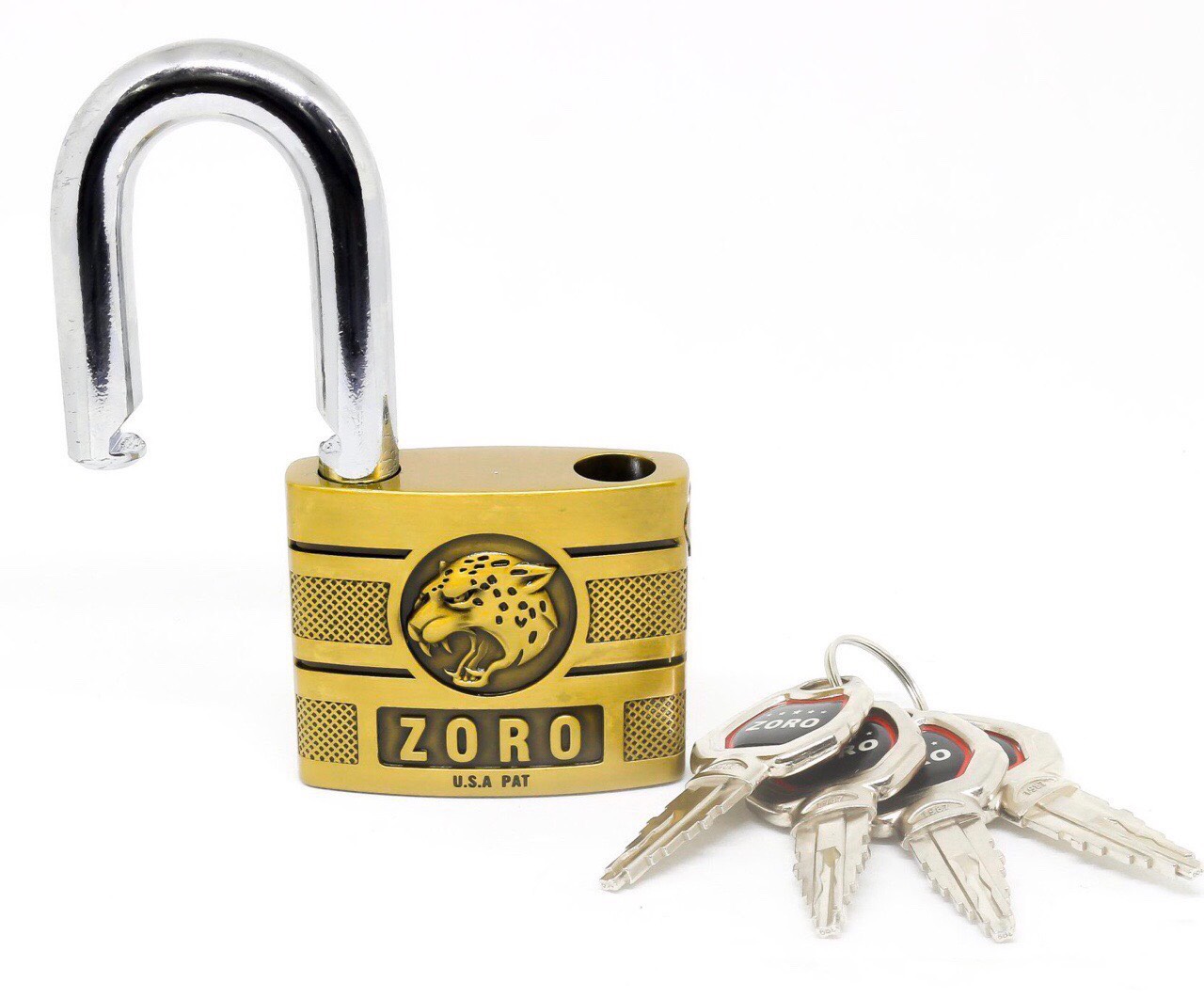 Ổ KHÓA ZORO CHÌA MUỖNG CÓ ỐP CHỐNG CẮT BẢO VỆ CÀNG SIZE ĐẠI • Chất liệu: Hợp kim sắt, lõi đồng thau, chịu lực tốt cứng và chắc Size khóa ngang 7cm cao 10cm,