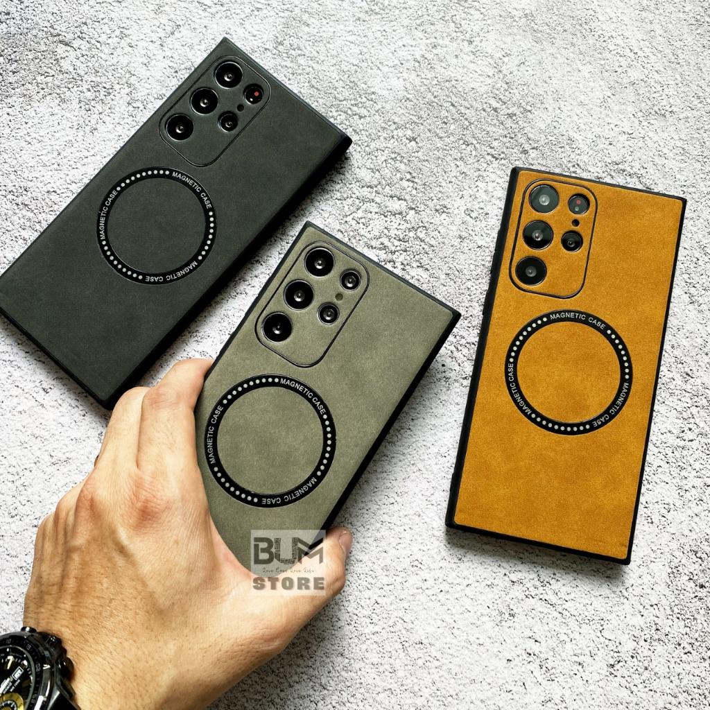 Ốp Lưng Da Lộn Cao Cấp Có Vòng Sạc Từ Tính Cho Samsung S25 Ultra / S25 Plus / S24 Ultra / S24 Plus - Chất liệu : da lộn , viền silicon - Có