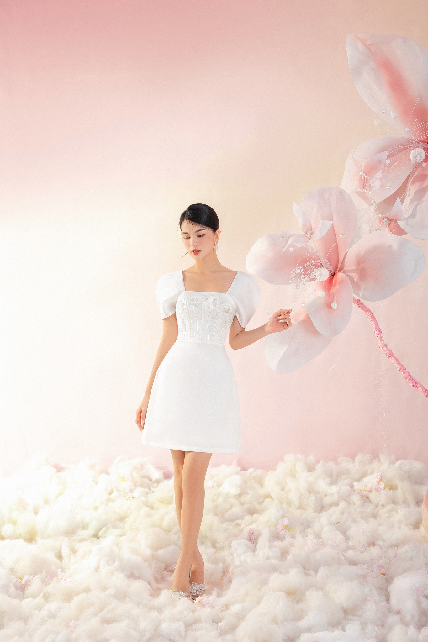 - Chất liệu chính: Polyester Organza, xuất xứ Hàn Quốc - Chất liệu lót: Polyester Satin, xuất xứ Việt Nam - Nghệ nhân cắt may: Thanh Thuỷ, cắt may thủ công tinh tế tại Hity