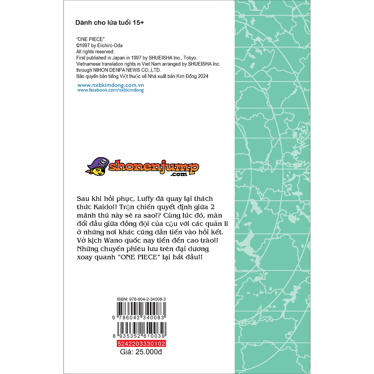 Mua tại TiktokSau khi hồi phục, Luffy đã quay lại thách thức Kaido!! Trận chiến quyết định giữa 2 mãnh thú này sẽ ra sao!? Cùng lúc đó, màn đối đầu giữa đồng đội của cậu với các quản lí ở những nơi khác cũng dần tiến vào hồi kết. Vở kịch Wano quốc nay tiến đến cao trào!! Những chuyến phiêu lưu trên đại dương xoay quanh “ONE PIECE” lại bắt đầu!!