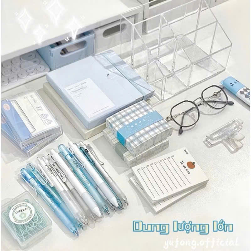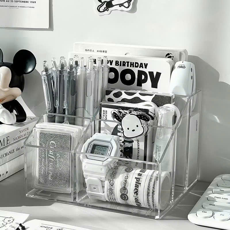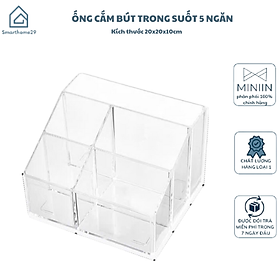 Ống Cắm Bút Trong Suốt 5 Ngăn Đựng Bút Cọ Trang Điểm Decor Bàn Học - Tiện Lợi, Sang Trọng