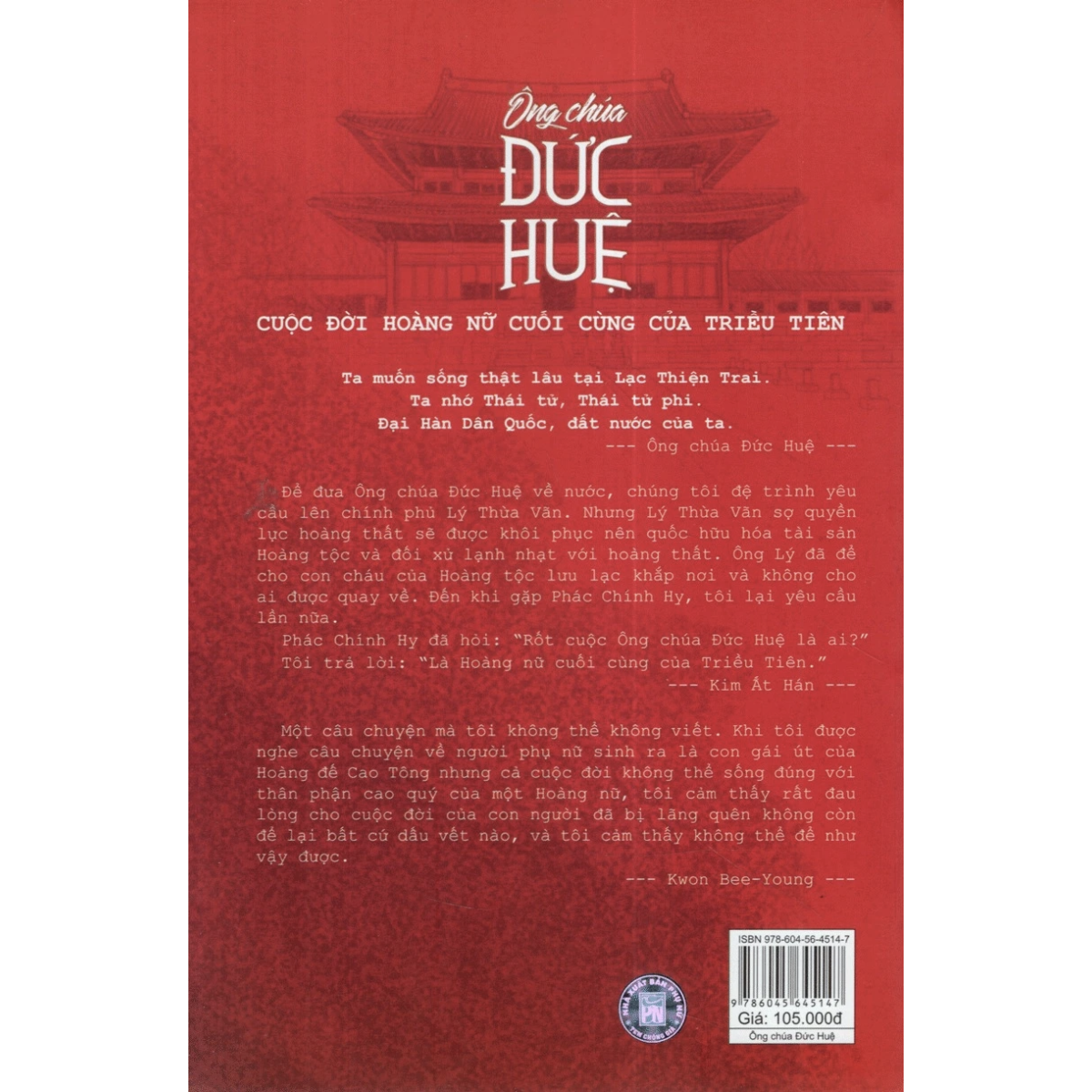 Thông qua tiểu thuyết Ông chúa Đức Huệ, tác giả Kwon Bee-Young đã thực sự dồn hết nhiệt huyết để tái hiện lại phận đời của một người phụ nữ chấp chới trong dòng xoáy lịch sử, qua đó giúp độc giả cảm nhận được nỗi đau mất nước trong cuộc đời đầy đau khổ của bà: “Ta muốn sống thật lâu ở Lạc Thiện Trai. Ta rất nhớ Thái tử, Thái tử phi. Đại Hàn Dân Quốc, đất nước của ta.”