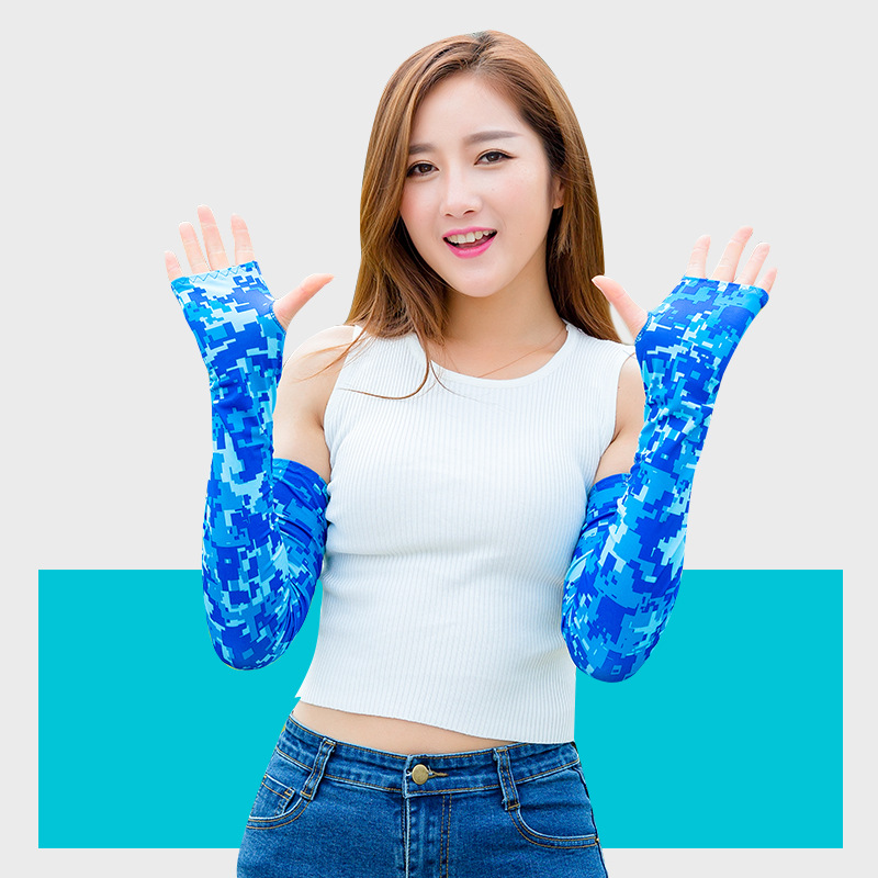 Găng tay chống nắng dài xỏ ngón cái che mu bàn tay vài thun lạnh thoáng mát co giãn tốt không tụt