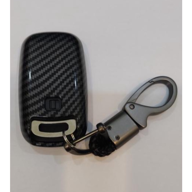 Ốp chìa khóa carbon, các bon cao cấp, bọc, bảo vệ chìa khóa kèm móc đeo inox cho xe Hyundai Santafe 2021 mẫu mới bên trong bọc cao su mềm, tránh va đập, bảo vệ