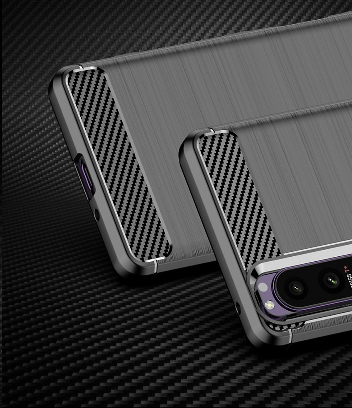 Ốp lưng chống sốc Sony Xperia 5 Mark 5 Vân Sợi Carbon được thiết kế với 2 dải carbon trên dưới tuyệt đẹp, độc đáo, sang trọng Ốp lưng được làm từ chất liệu nhựa