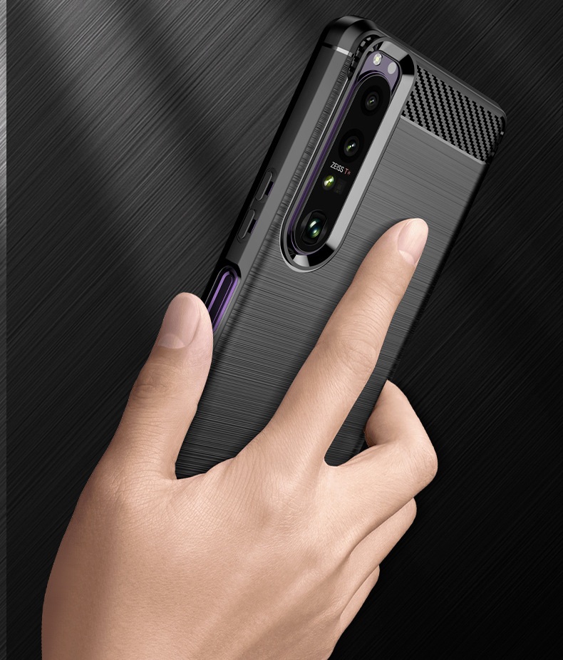 Ốp lưng chống sốc Sony Xperia 1 Vân Sợi Carbon được thiết kế với 2 dải carbon trên dưới tuyệt đẹp, độc đáo, sang trọng Ốp lưng được làm từ chất liệu nhựa mềm TPU