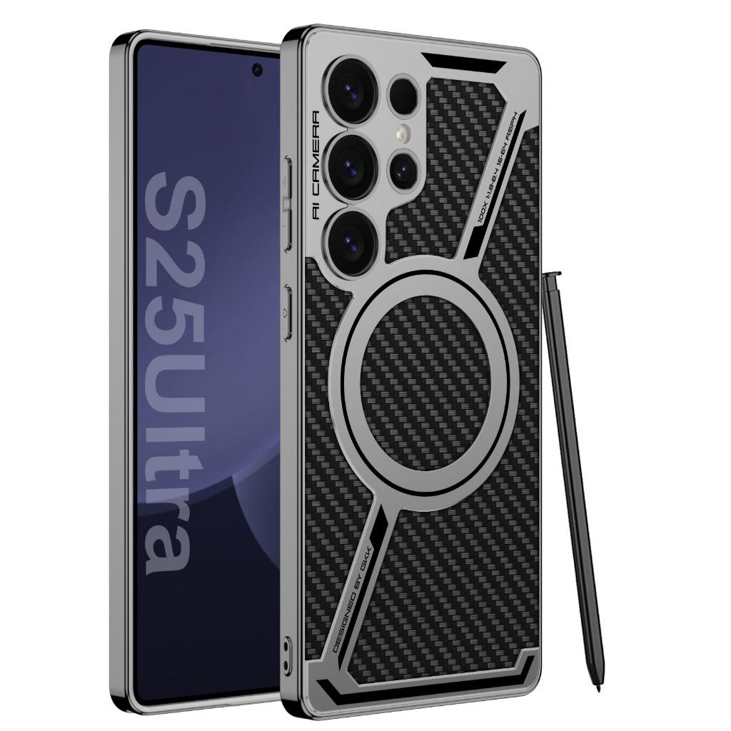 - Ốp lưng nhựa cứng vân carbon , thổ cẩm có vòng hỗ trợ sạc không dây từ tính tiện lợi cho máy Samsung Galaxy S25 Ultra - Mặt lưng nhựa cứng in sần không