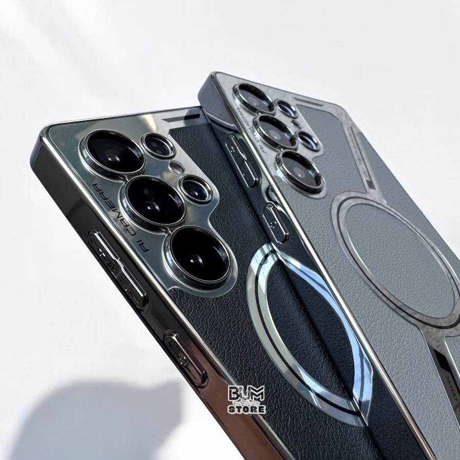 ✨Ốp Lưng Da Từ Tính Cho Samsung Galaxy S25 Ultra Giả Kim Loại Bảo Vệ Camera DESIGNED BY GKK