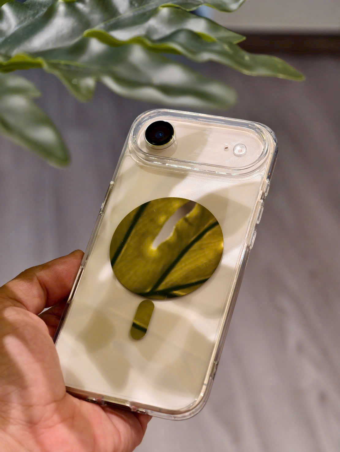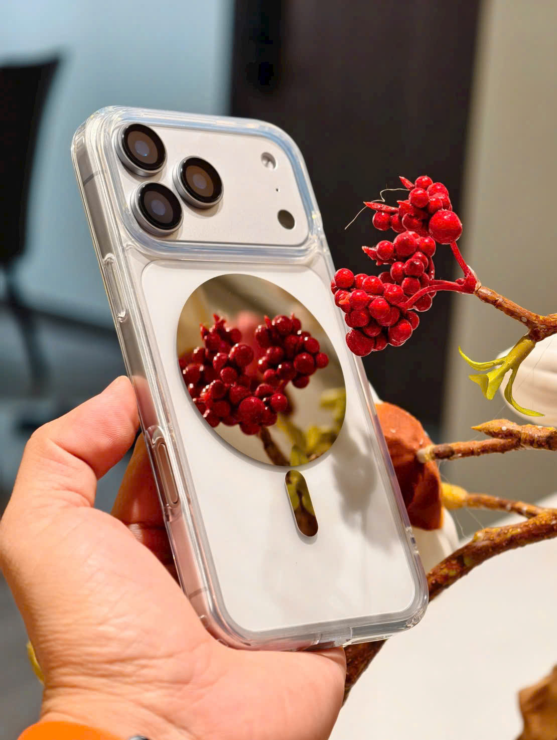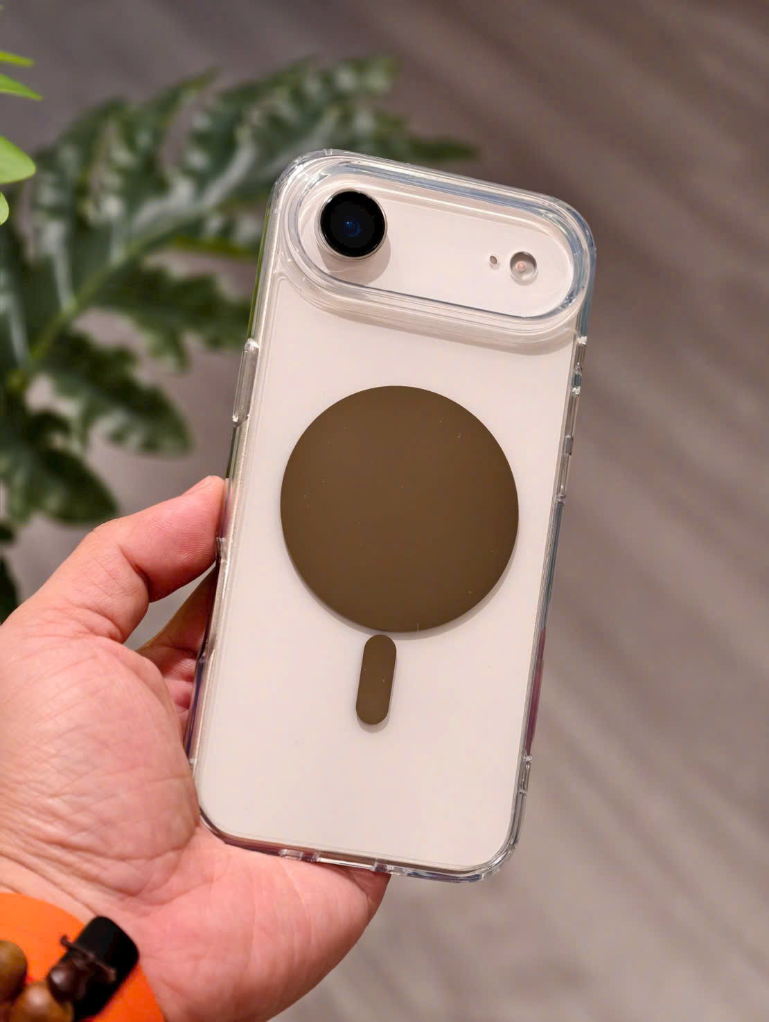 Ốp lưng iphone 17 pro max trong suốt, gắn sạc từ tính kiêm giá đỡ.