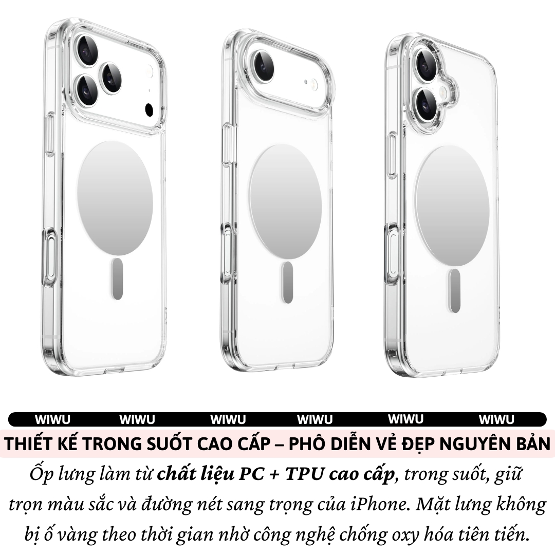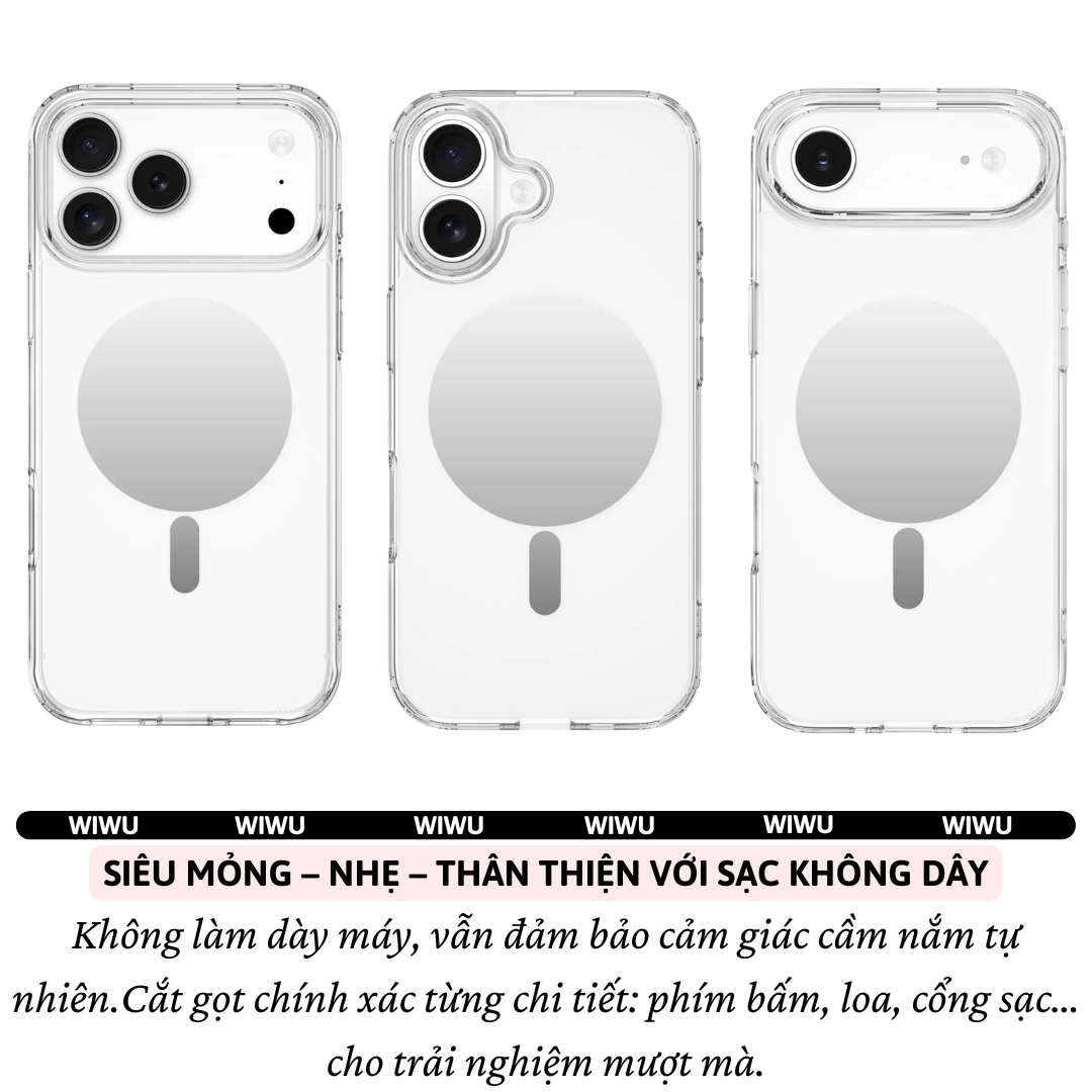 Mua tại TiktokỐp Lưng Gương Magnetic N52 WiWU Mirror Trong Suốt Cho iPhone 17 Pro Max / 17 Pro / 17 Air – Bảo Vệ Toàn Diện, Siêu Sang Trọng BẢO VỆ – THỜI TRANG – TIỆN ÍCH – TẤT CẢ TRONG MỘT CHIẾC ỐP Bạn đang tìm một chiếc ốp lưng vừa giữ trọn vẻ đẹp nguyên bản cho iPhone, vừa bảo vệ chắc chắn mà vẫn đa năng và thời trang? Ốp lưng WiWU Mirror Magnetic chính là lựa chọn hoàn hảo dành cho bạn! LÝ DO BẠN KHÔNG THỂ BỎ QUA MẪU ỐP NÀY GƯƠNG SOI TÍCH HỢP – PHỤ KIỆN LÀM ĐẸP MỌI LÚC, MỌI NƠI