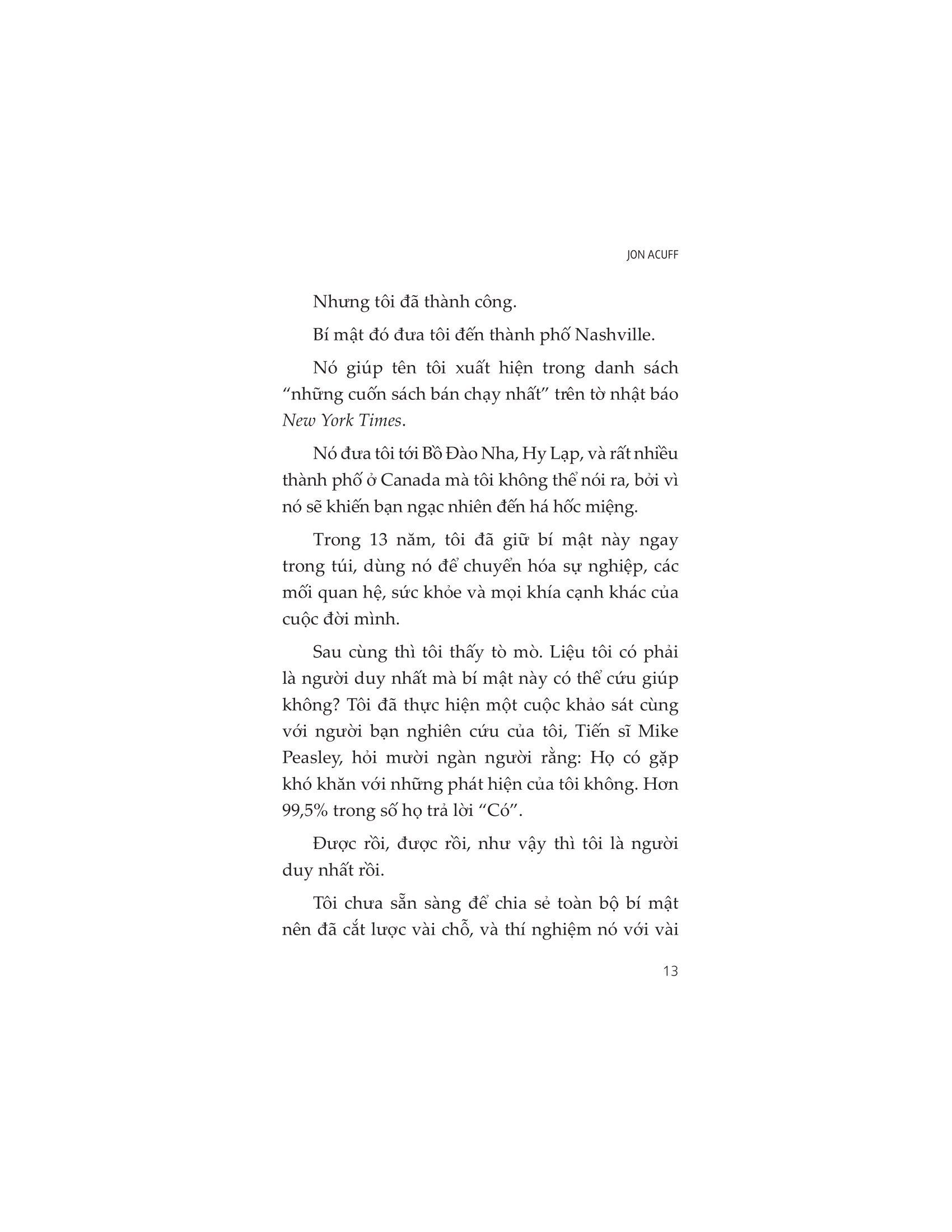 “Nếu bạn đã sẵn sàng thay đổi định hướng của cuộc đời, Jon Acuff ở đây để giúp bạn làm được điều đó. Đây là một cuốn sách đơn giản, có sức ảnh hưởng và hữu ích, nó là thứ bạn sẽ nhớ tới mỗi ngày trong suốt quãng đời còn lại”.