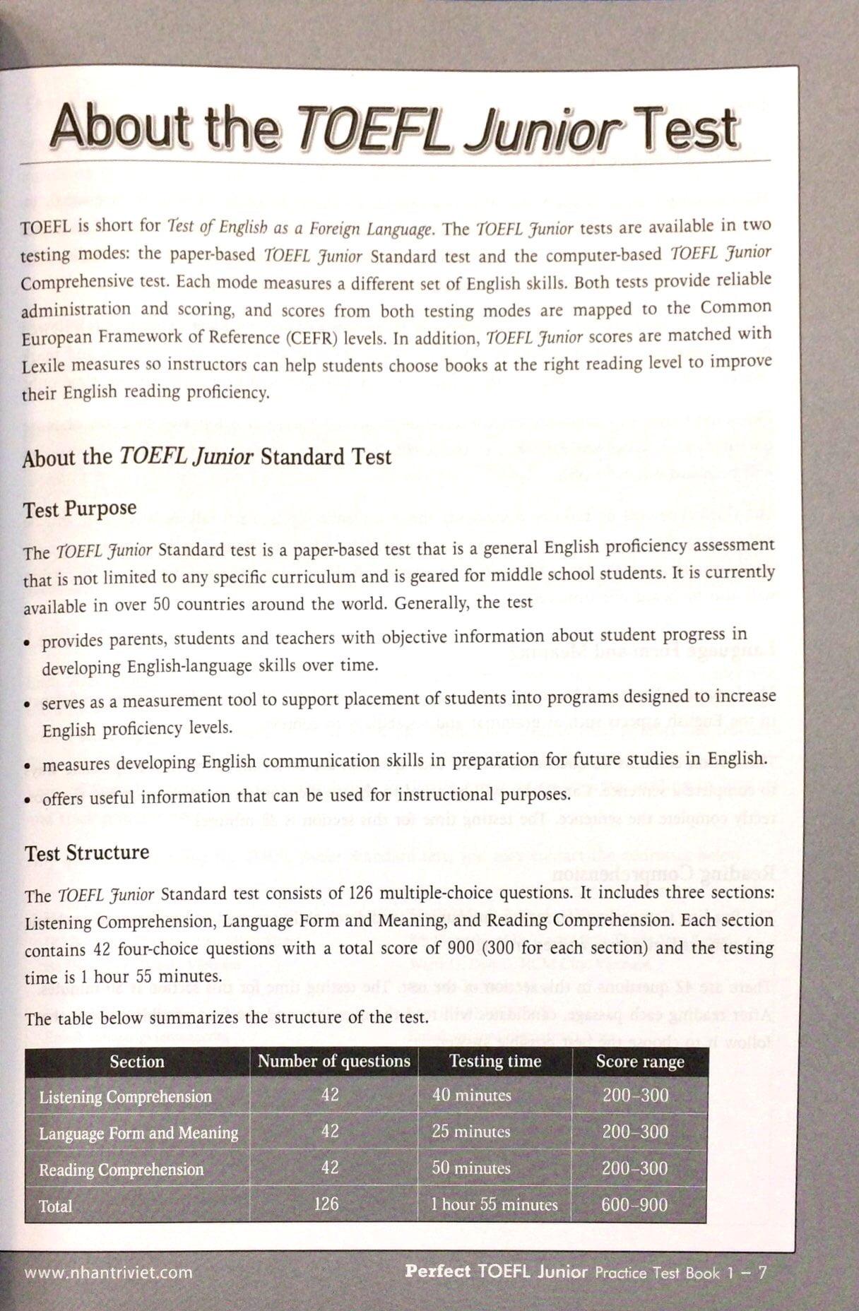 Master TOEFL Junior Basic A2 (Kèm CD) The TOEFL Junior was made to measure a non-native Enghlish speaker's. The test is divided into three sections: Listening Comprehension (42 question), Language Form and Meaning (42 question),