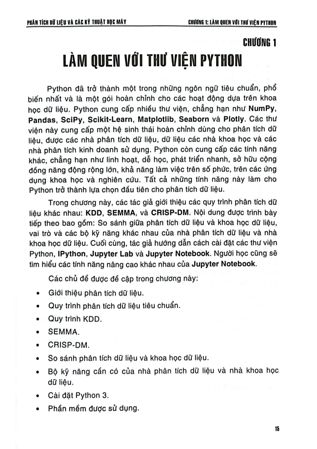 Khoa Học Dữ Liệu Với Python Sách Khoa học dữ liệu với Python được trình bày với 424 trang khổ 16 x 24 cm qua 7 chương và 1 phụ lục: Chương 1: Giới thiệu