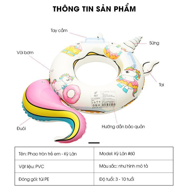 • Thông tin cơ bản : Phao bơi tròn trẻ em dễ thương Kỳ Lân DJS-98 60cm