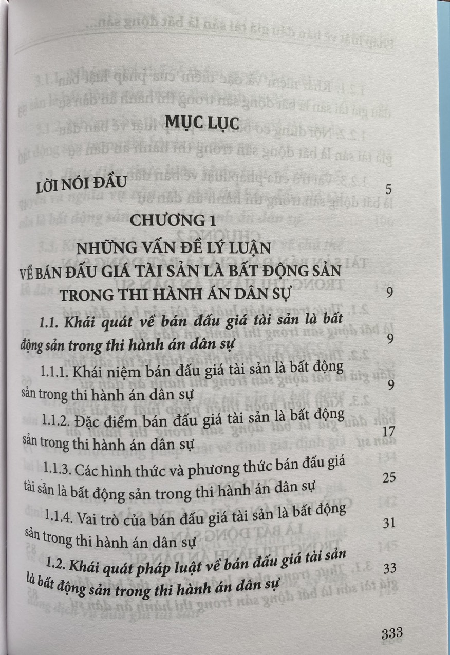 Trong cuốn sách các tác giả đã phân tích cơ sở lý luận, thực trạng pháp luật và thực tiễn thực hiện pháp luật về bán đấu giá tài sản là bất động sản trong thi hành án dân sự, đồng thời đề xuất các giải pháp hoàn thiện pháp luật để nâng cao hiệu quả hoạt động bán đấu giá tài sản là bất động sản trong thi hành án dân sự ở Việt Nam.