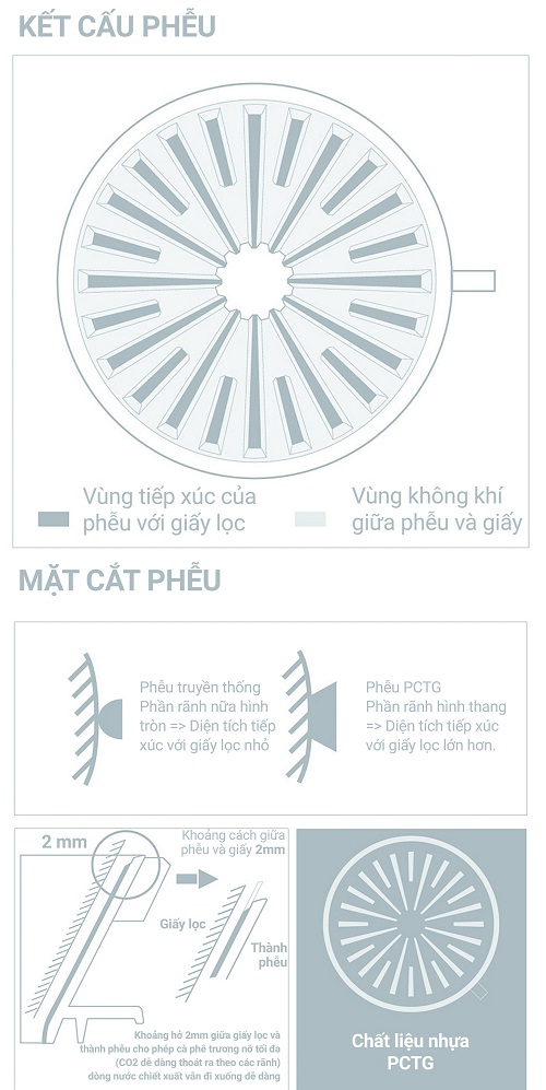 PHỄU V60 SIZE BẰNG NHỰA THỰC PHẨM PCTG CAFE DE KONA Phễu được làm từ nhựa tinh khiết có độ trong suốt như thuỷ tinh. Cấu tạo từ nhựa PCTG chuyên dùng trong sản xuất