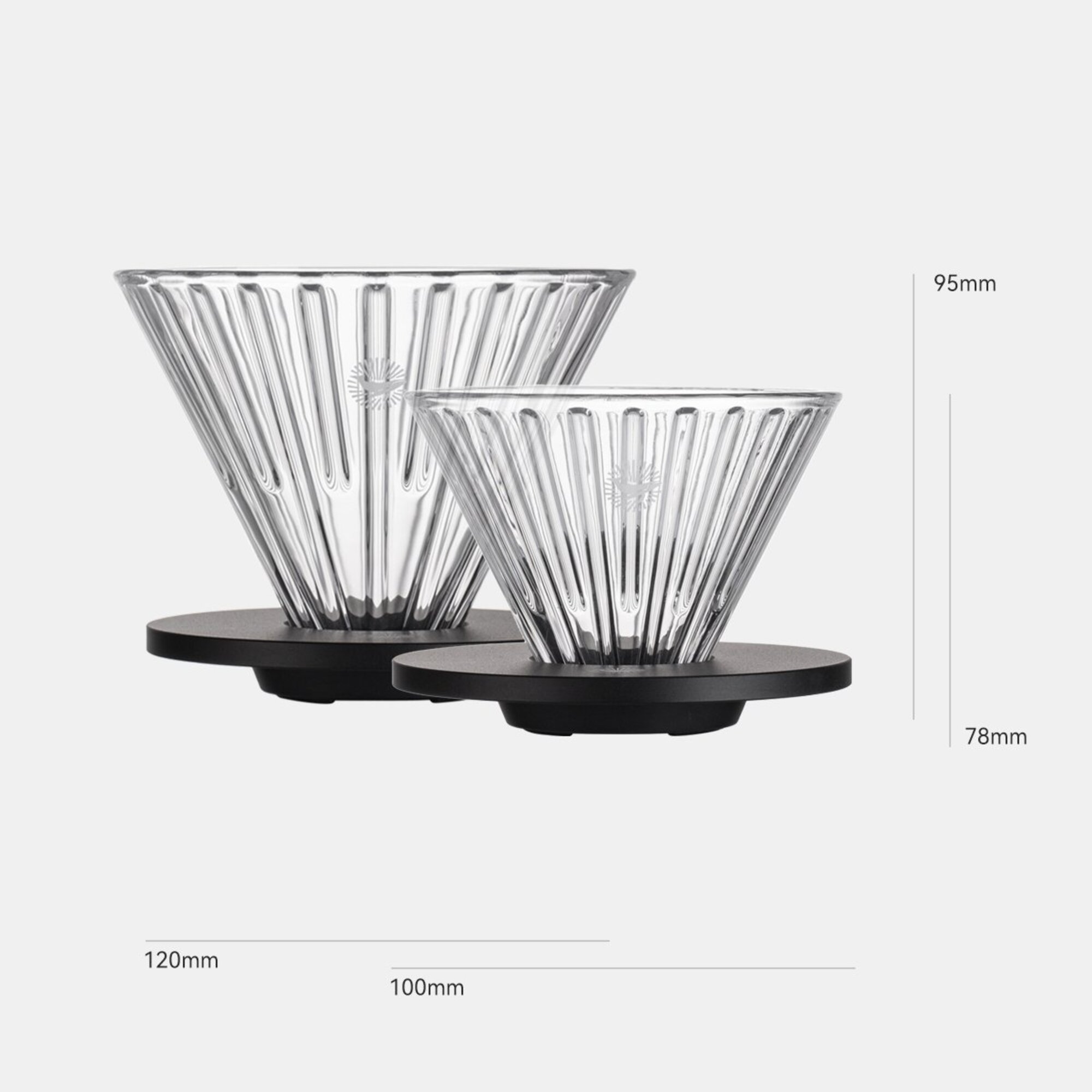 ✨Phễu thuỷ tinh V60 rãnh thẳng đế nhôm Cafede Kona